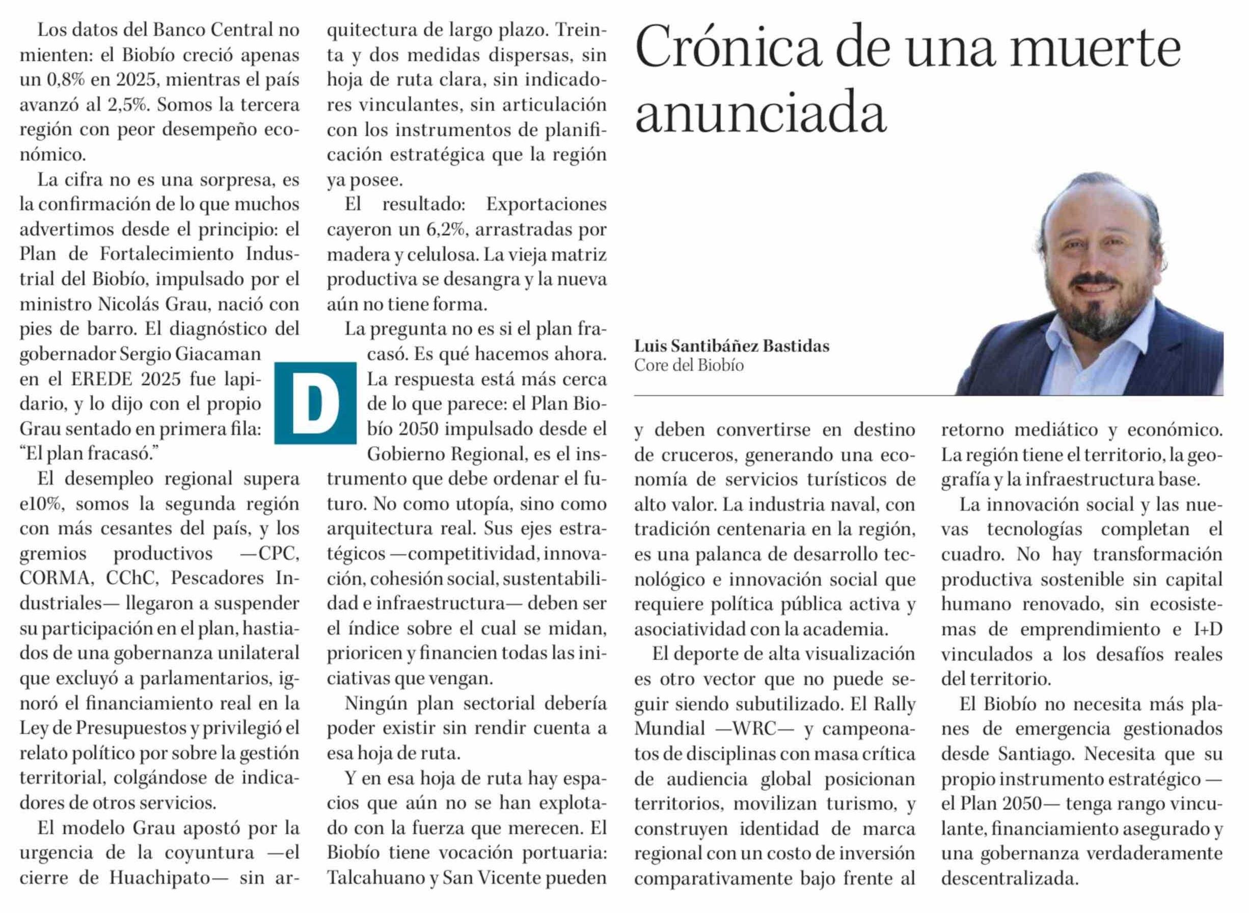 Columnas de Opinión: Crónica de una muerte anunciada 25-04-2026 Diario Concepción |