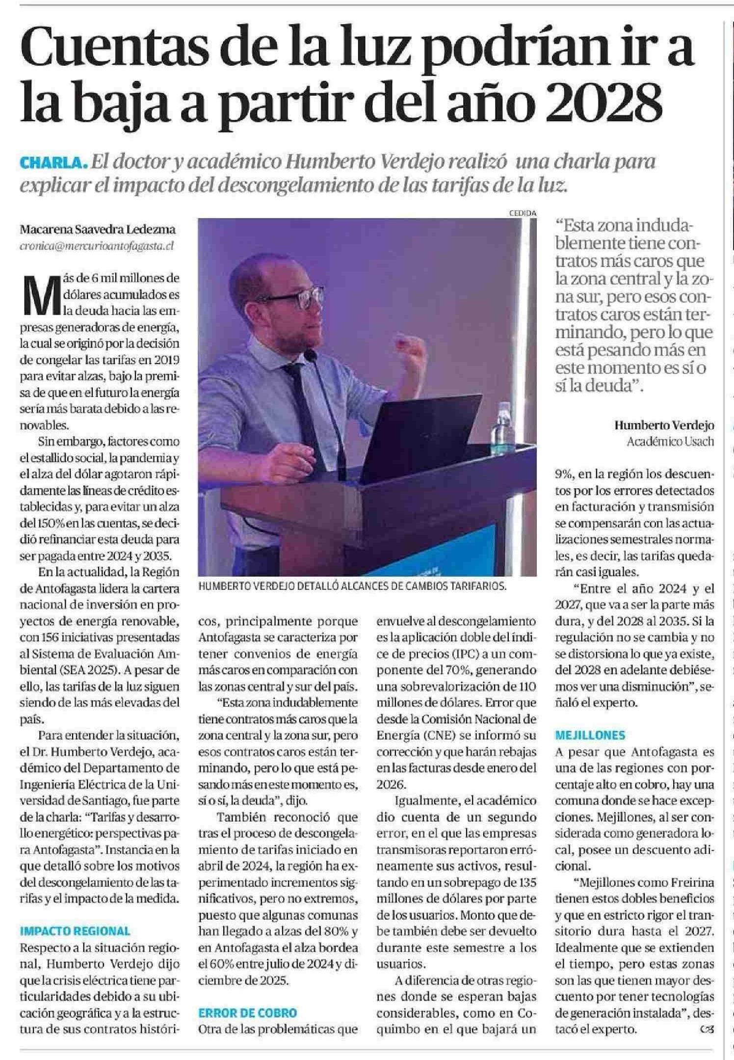 Cuentas de la luz podrían ir a la baja a partir del año 2028 15-01-2026 El Mercurio de Calama |