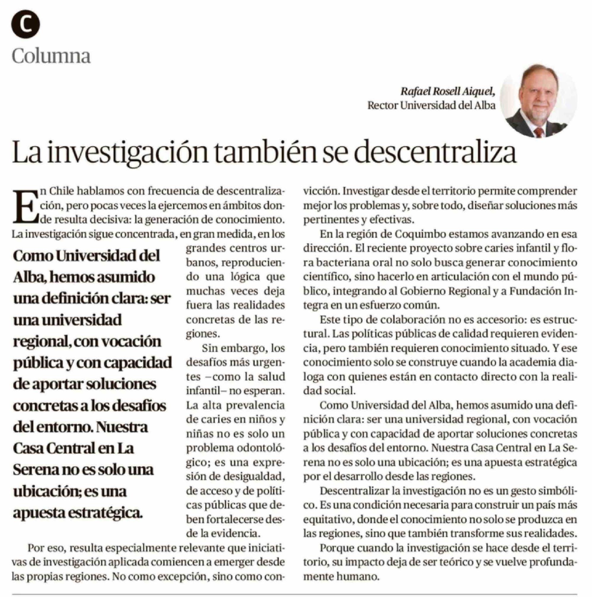 Columnas de Opinión: La investigación también se descentraliza 14-04-2026 Crónica de Chillán |