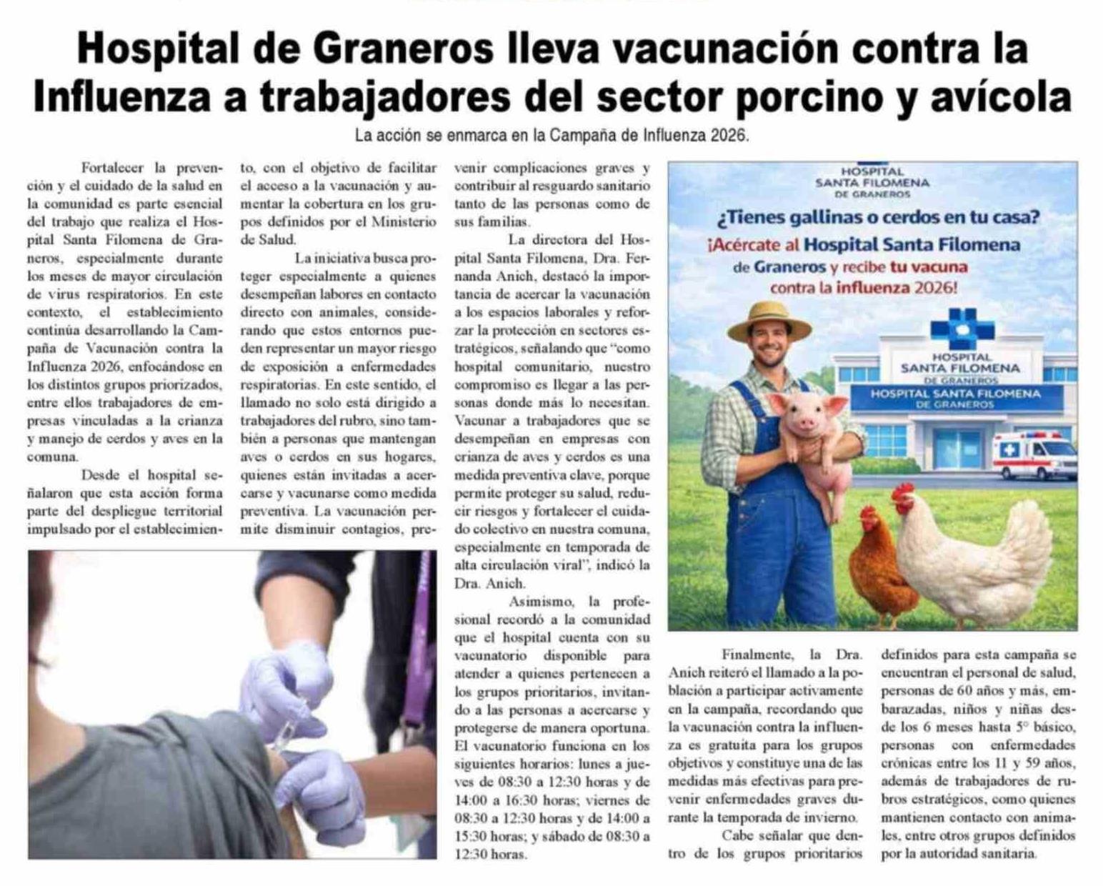 Título: Hospital de Graneros lleva vacunación contra la Influenza a trabajadores del sector porcino y avícola