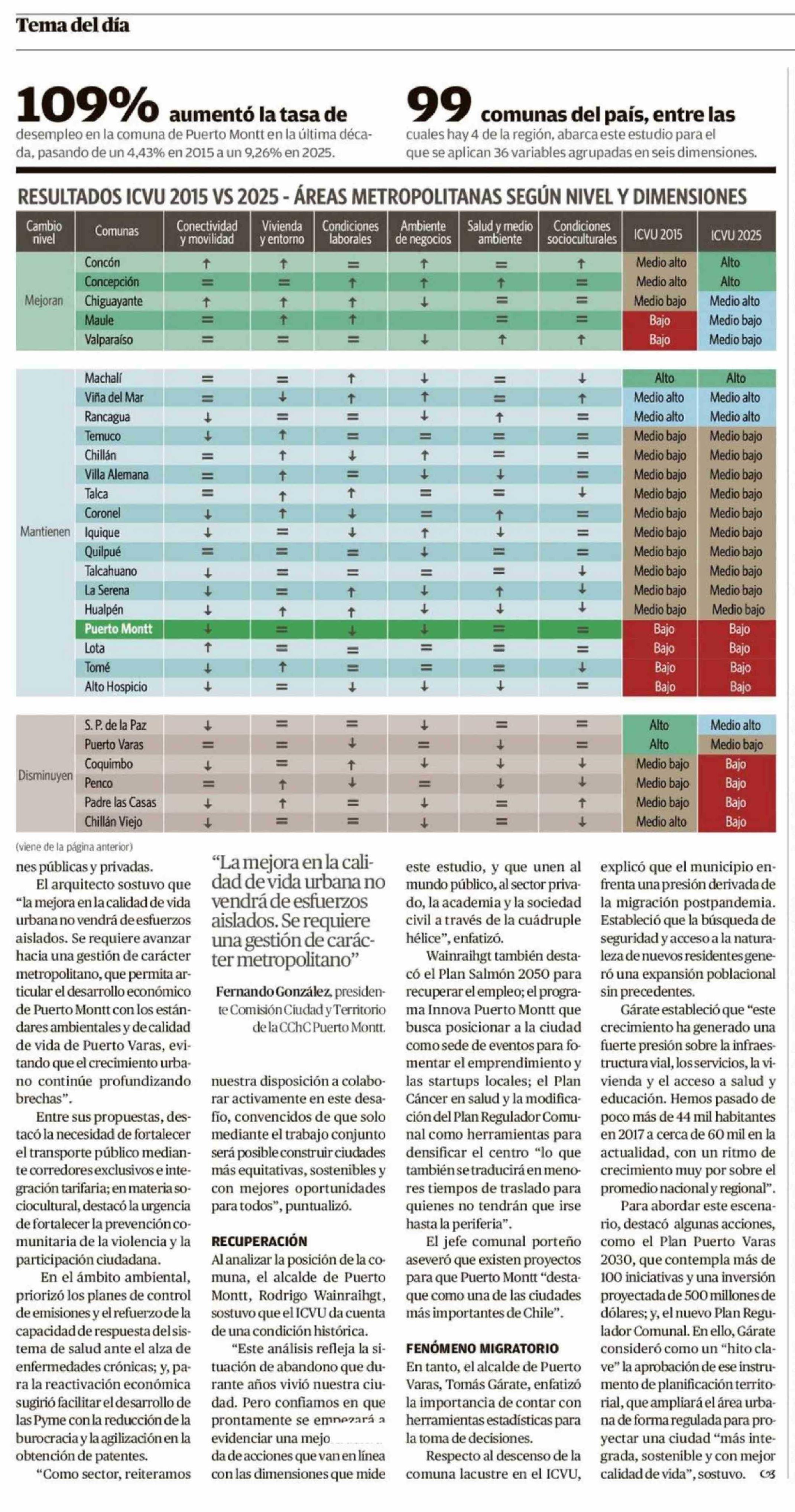 Título: Puerto Montt se mantiene y Puerto Varas cae en calidad de vida urbana