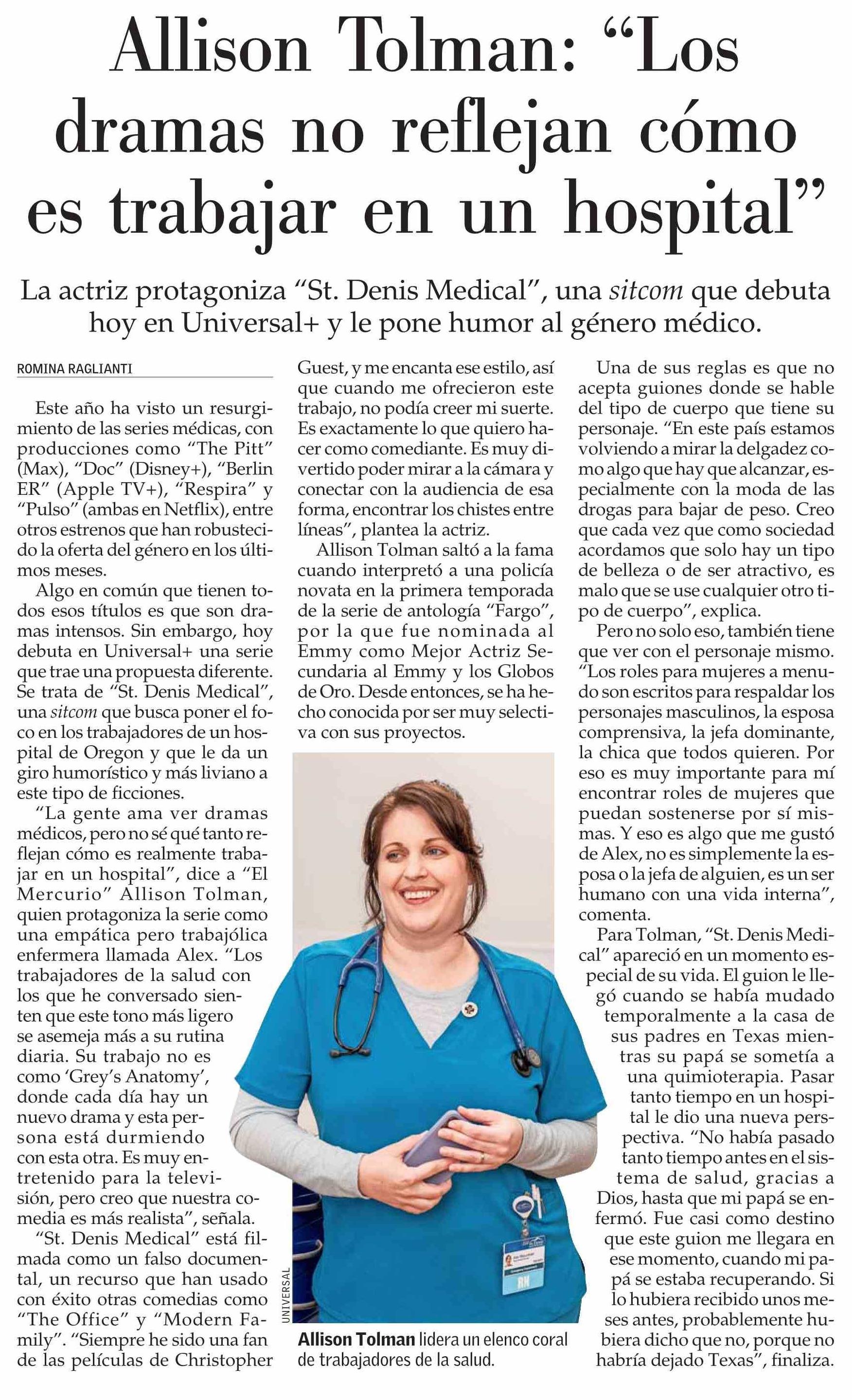 Allison Tolman: “Los dramas no reflejan cómo es trabajar en un hospital” 18-06-2025 El Mercurio |