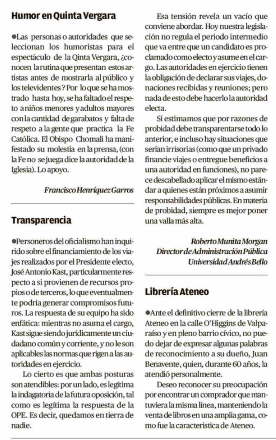 Cartas: Transparencia 25-02-2026 El Mercurio de Valparaíso |