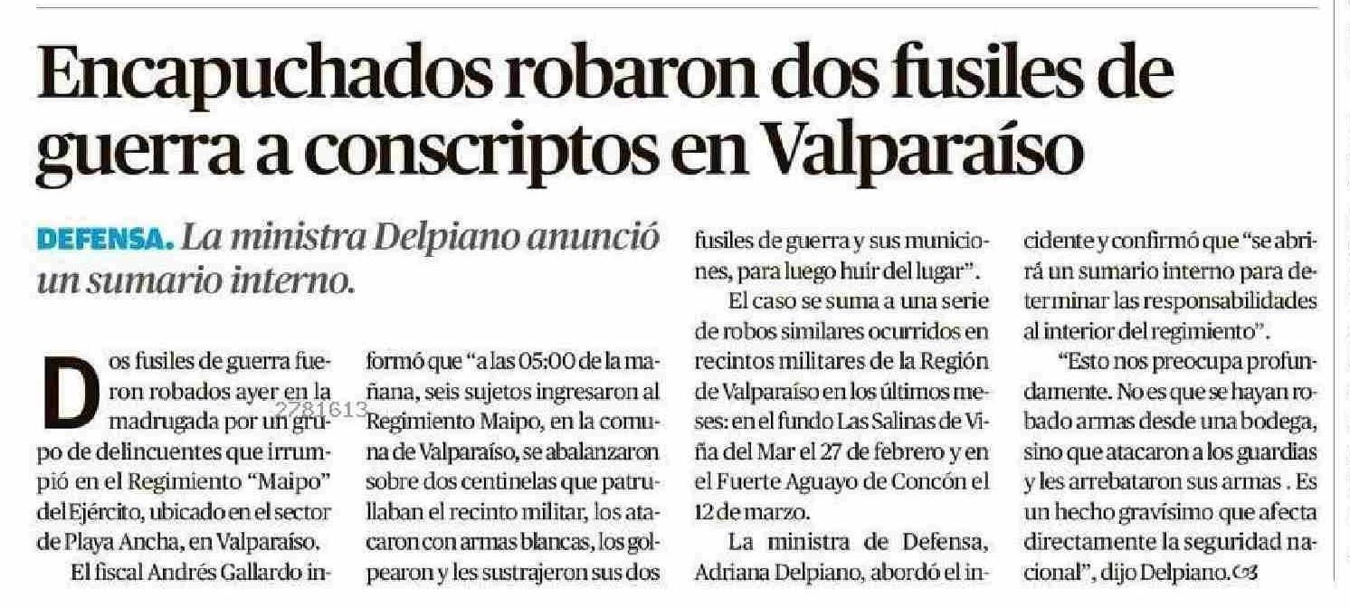 | Título: | Encapuchados robaron dos fusiles de guerra a conscriptos en Valparaíso |