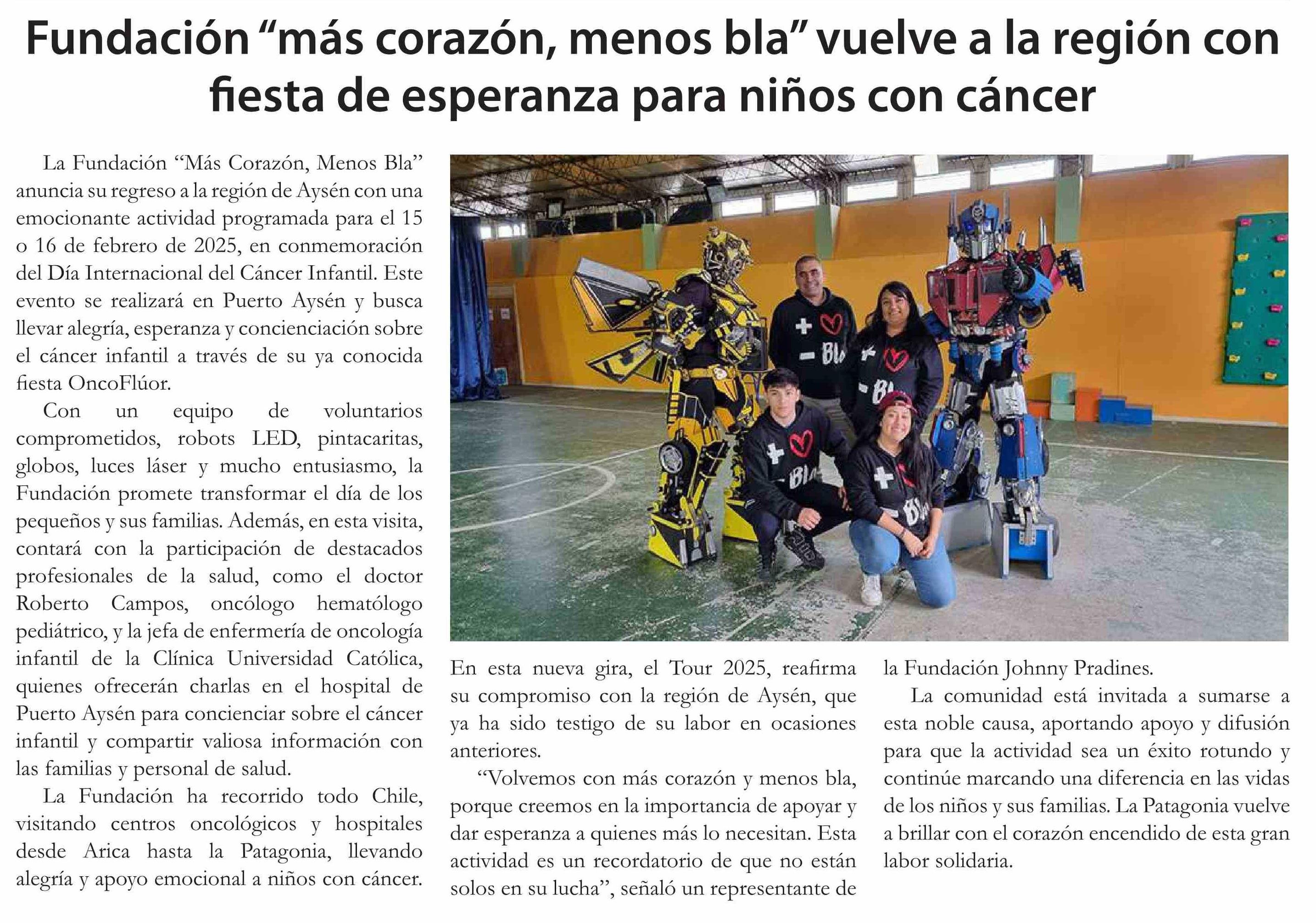 | Título: | Fundación “más corazón, menos bla” vuelve a la región con fiesta de esperanza para niños con cáncer |