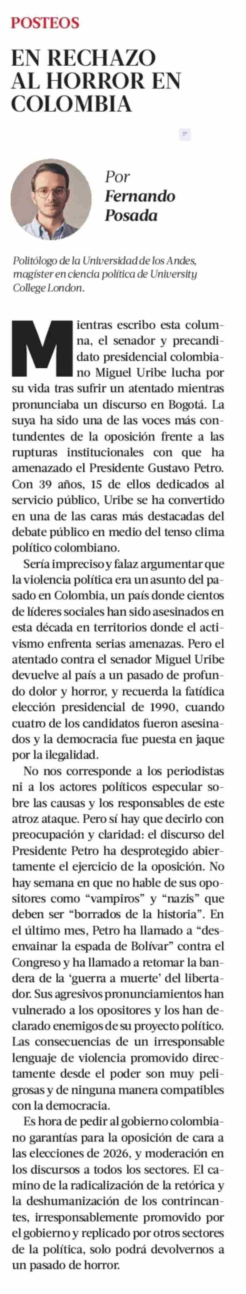 COLUMNAS DE OPINIÓN: EN RECHAZO AL HORROR EN COLOMBIA 14-06-2025 La Tercera |