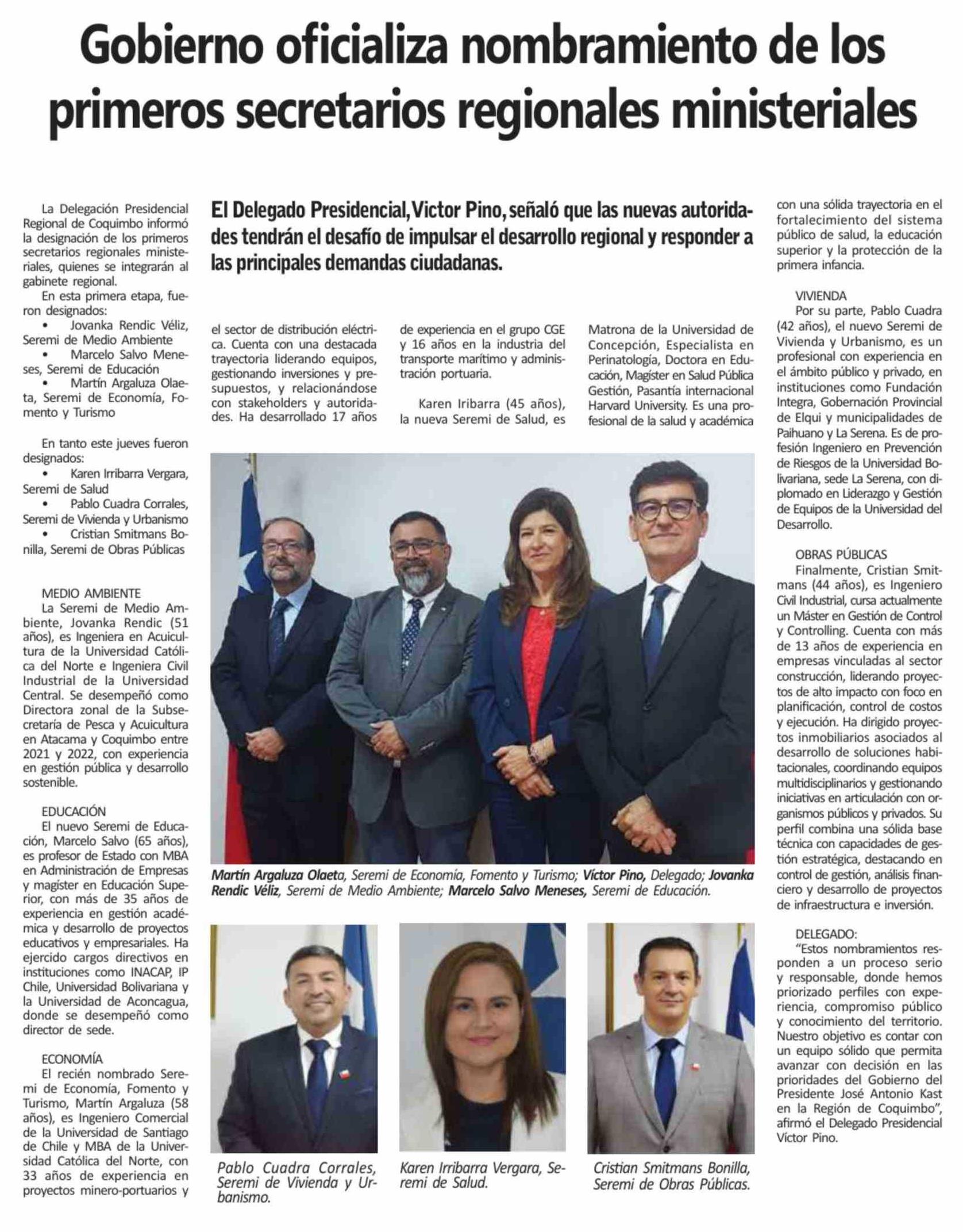Título: Gobierno oficializa nombramiento de los primeros secretarios regionales ministeriales