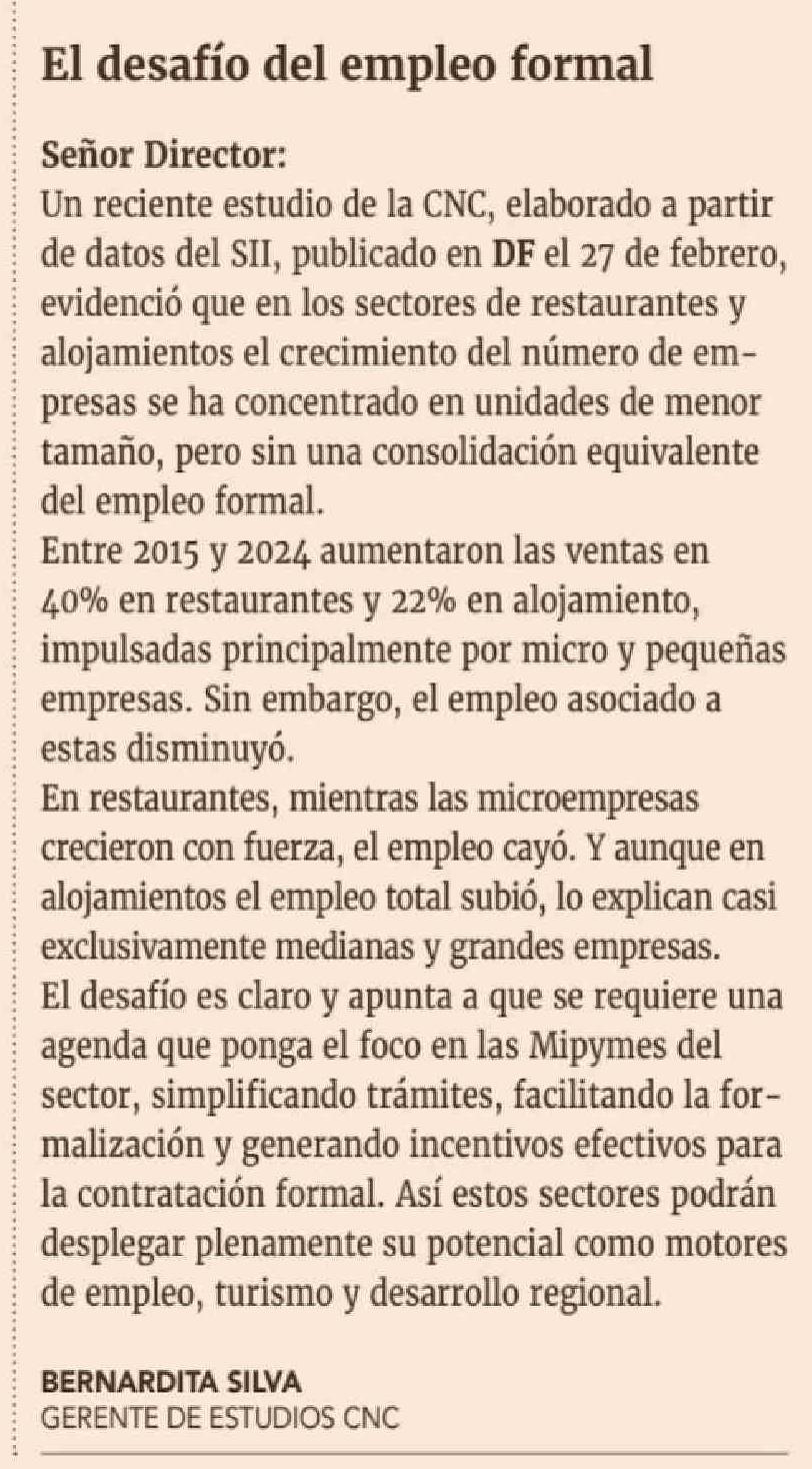 Cartas: El desafío del empleo formal 06-03-2026 Diario Financiero |