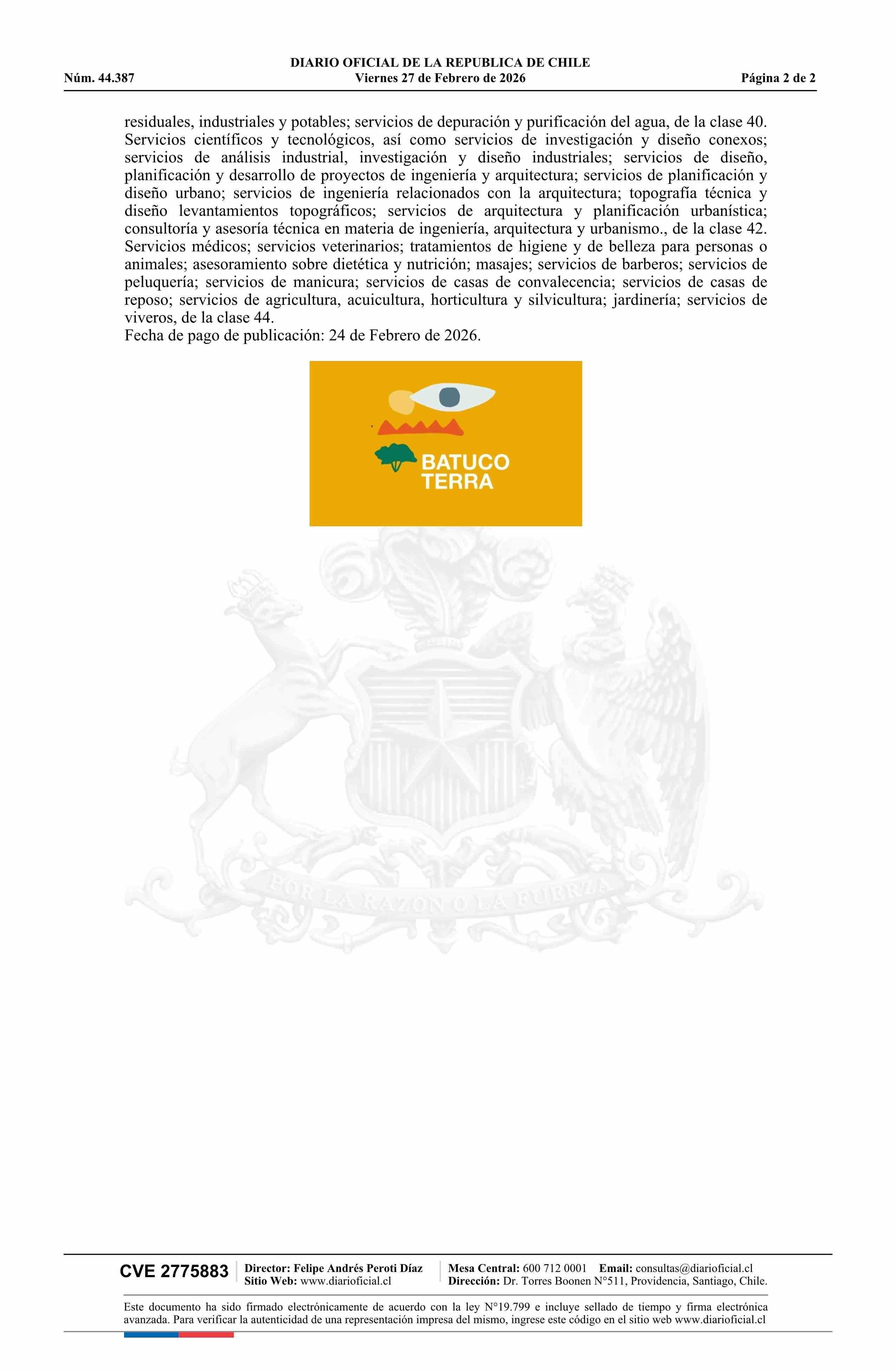 Solicitud número 1645750.- BATUCO TERRA 27-02-2026 Diario Oficial Edición Electrónica |