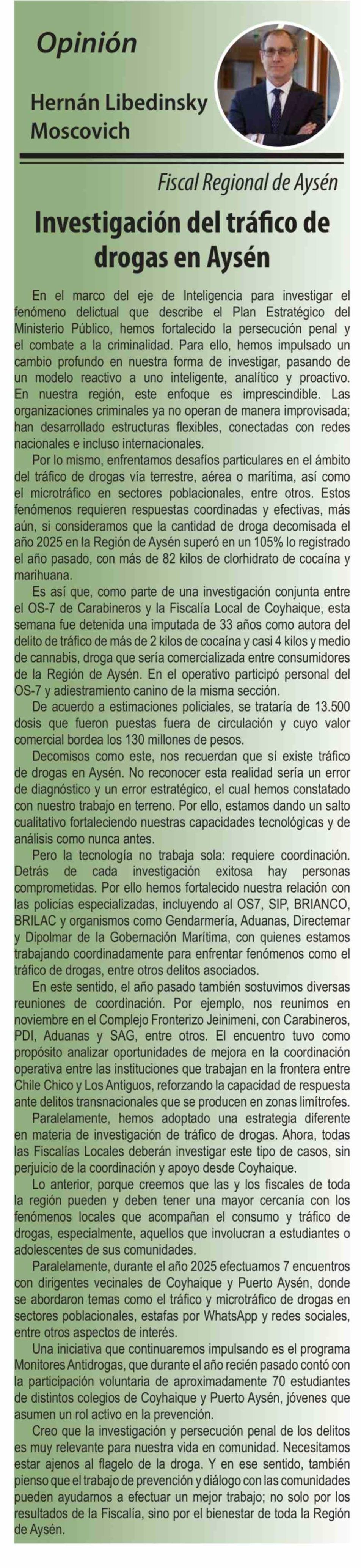 | Título: | Columnas de Opinión: Investigación del tráfico de drogas en Aysén |