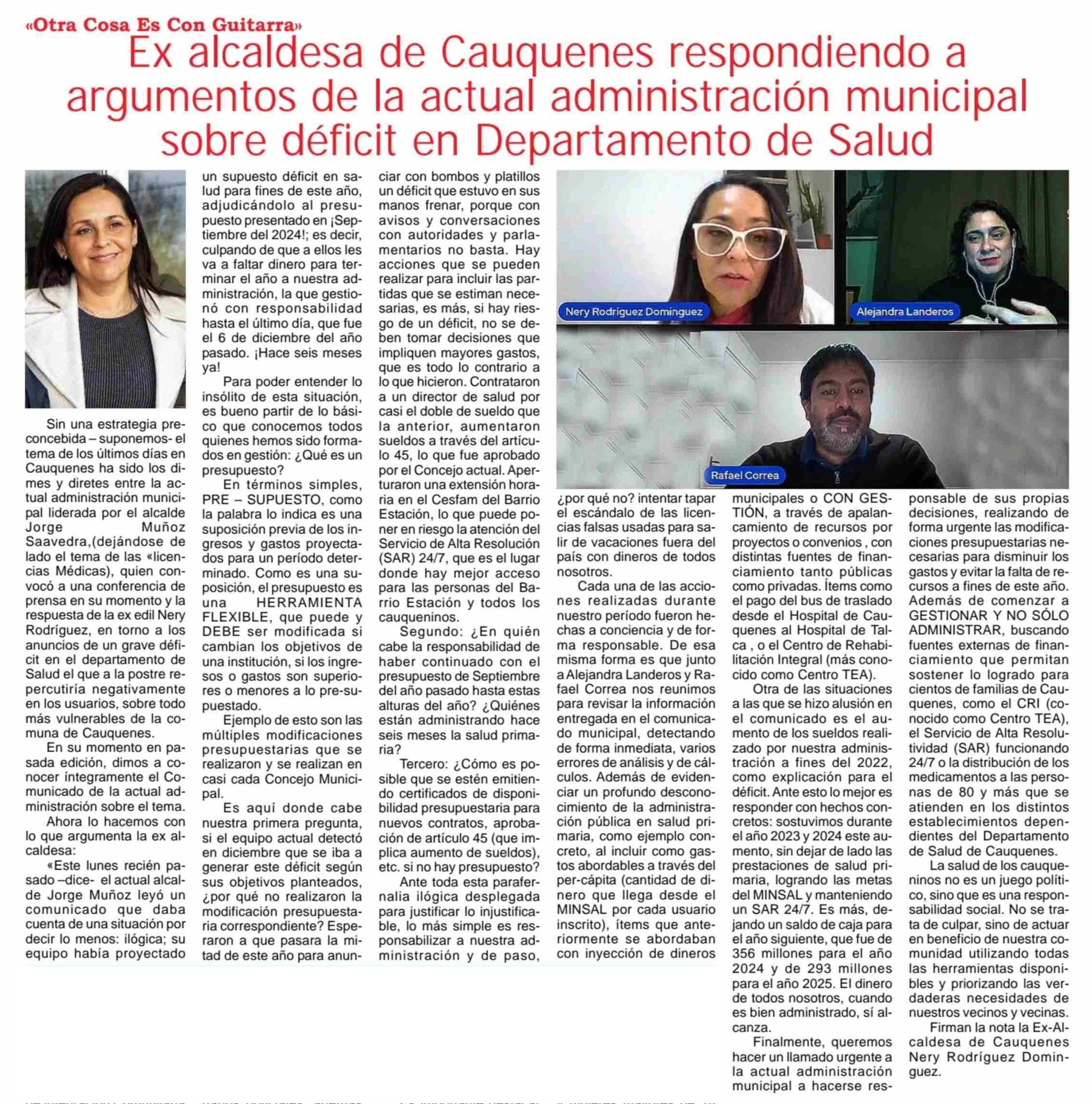 Ex alcaldesa de Cauquenes respondiendo a argumentos de la actual administración municipal sobre déficit en Departamento de Salud 18-06-2025 Maule Hoy |