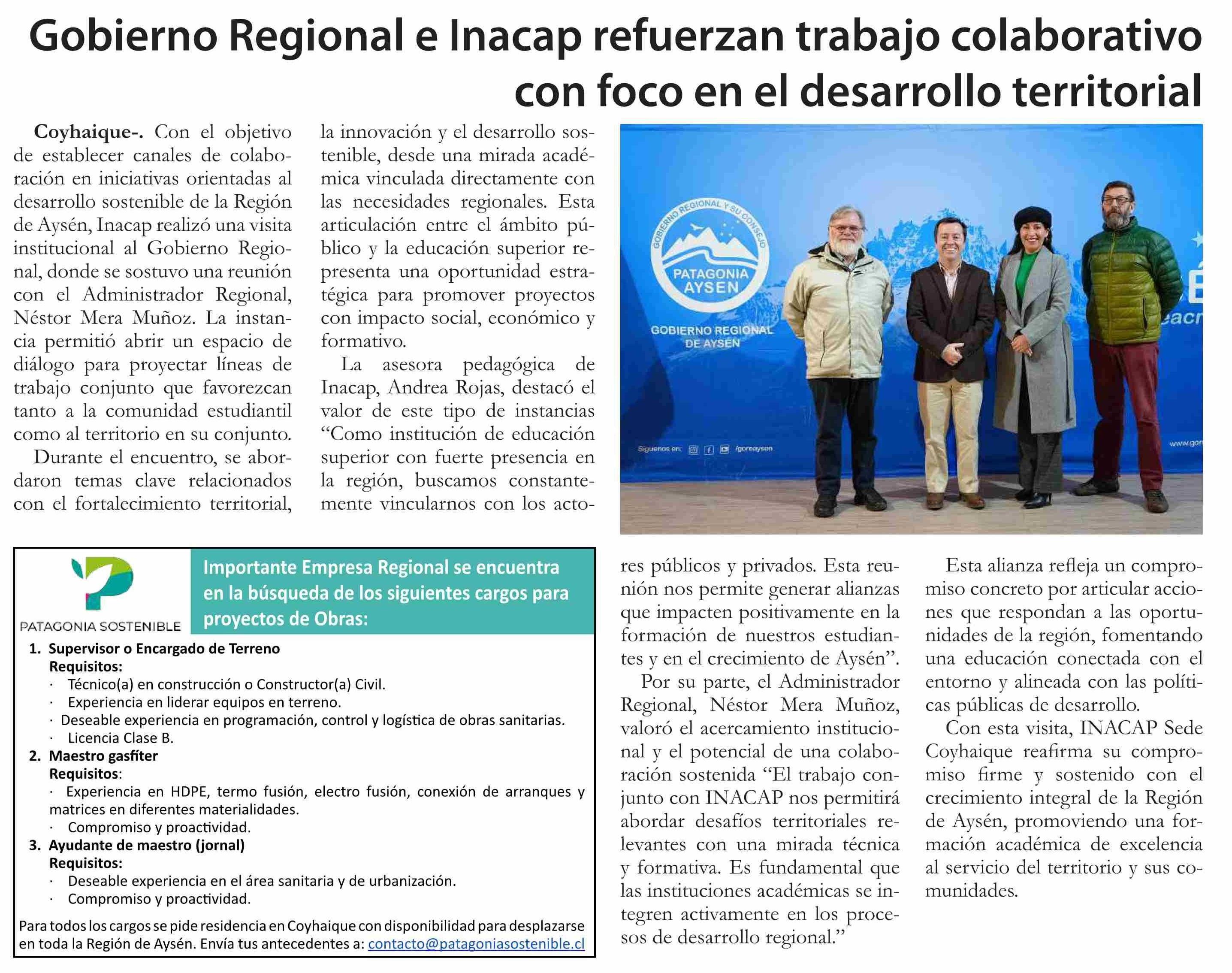 Gobierno Regional e Inacap refuerzan trabajo colaborativo con foco en el desarrollo territorial 14-06-2025 El Divisadero |