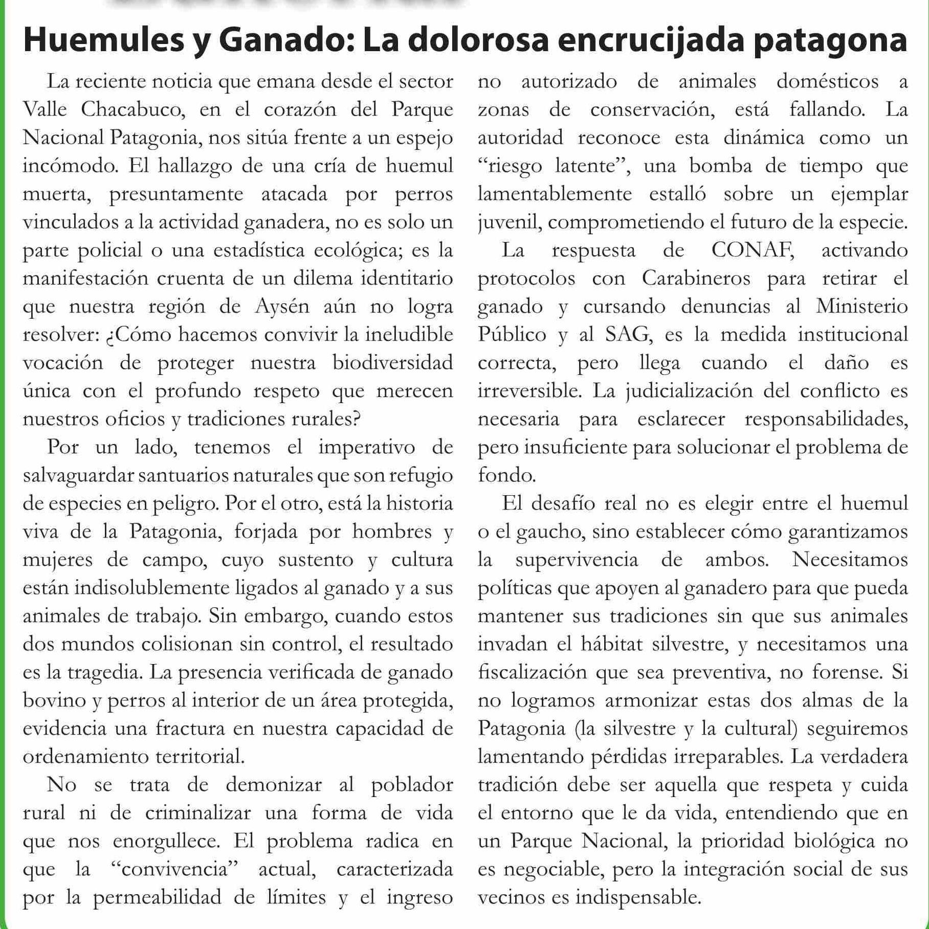 Editorial: Huemules y Ganado: La dolorosa encrucijada patagona 23-01-2026 El Divisadero |