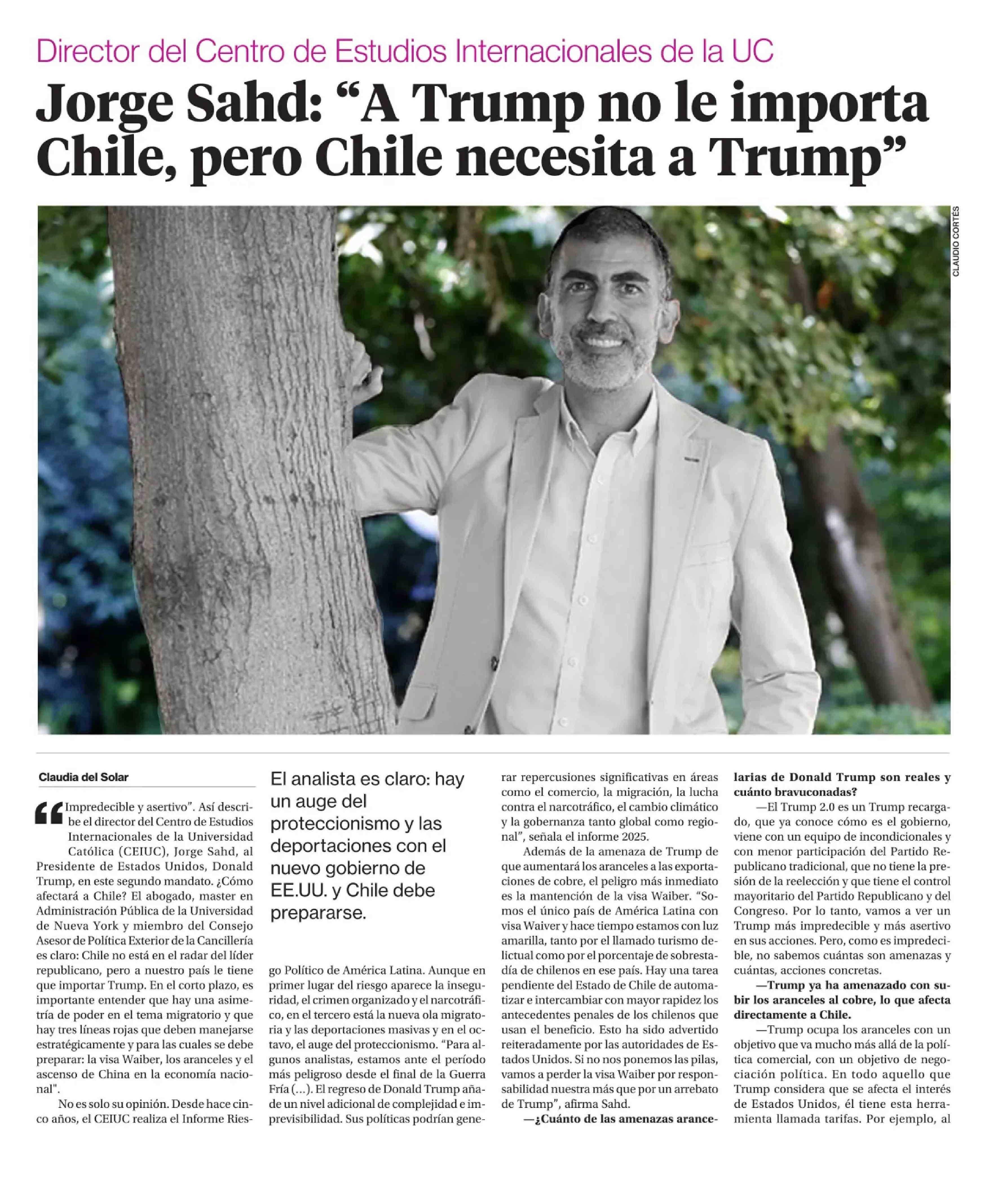 Jorge Sahd: “A Trump no le importa Chile, pero Chile necesita a Trump” 11-02-2025 La Segunda |