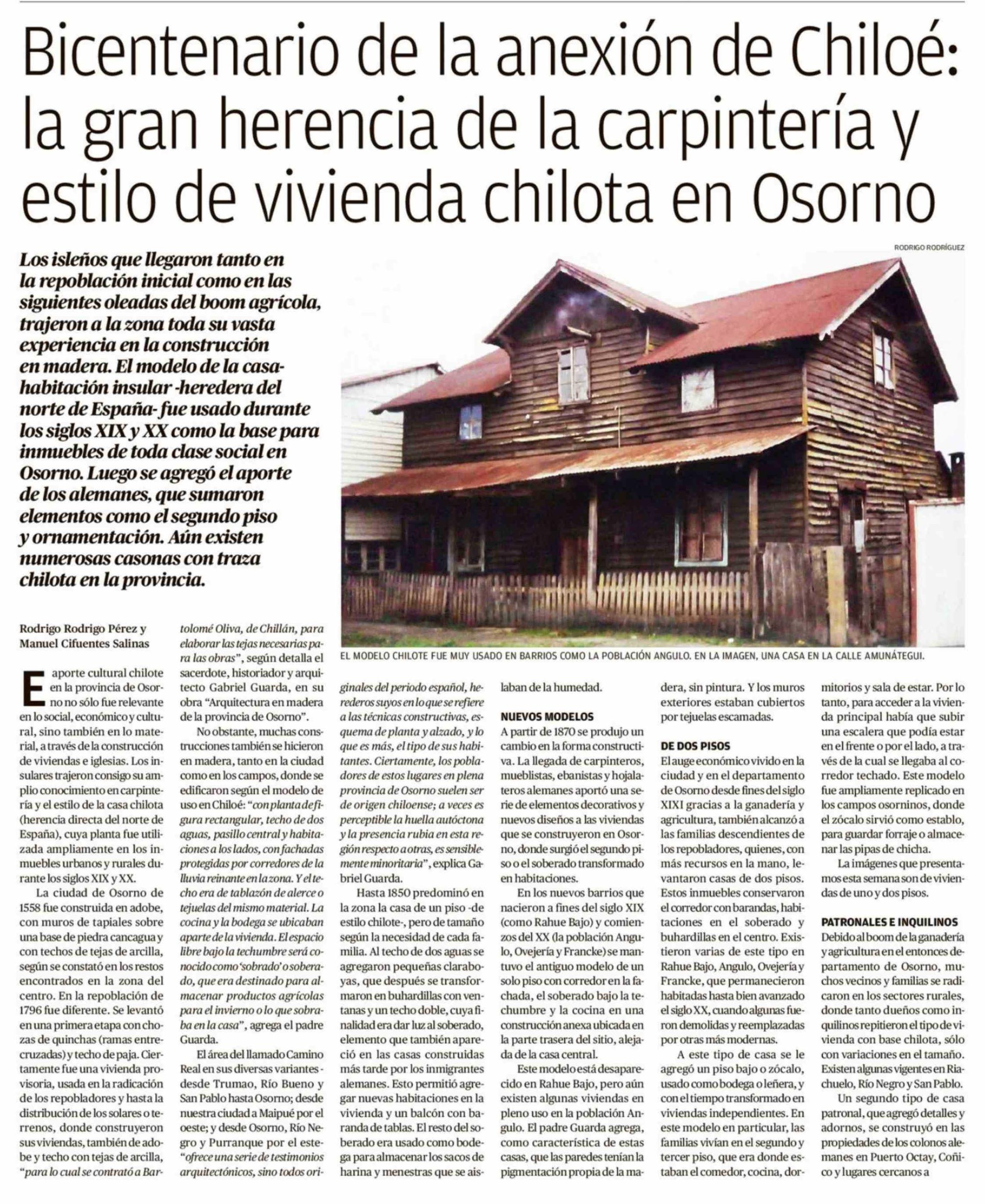 Título: Bicentenario de la anexión de Chiloé: la gran herencia de la carpintería y estilo de vivienda chilota en Osorno