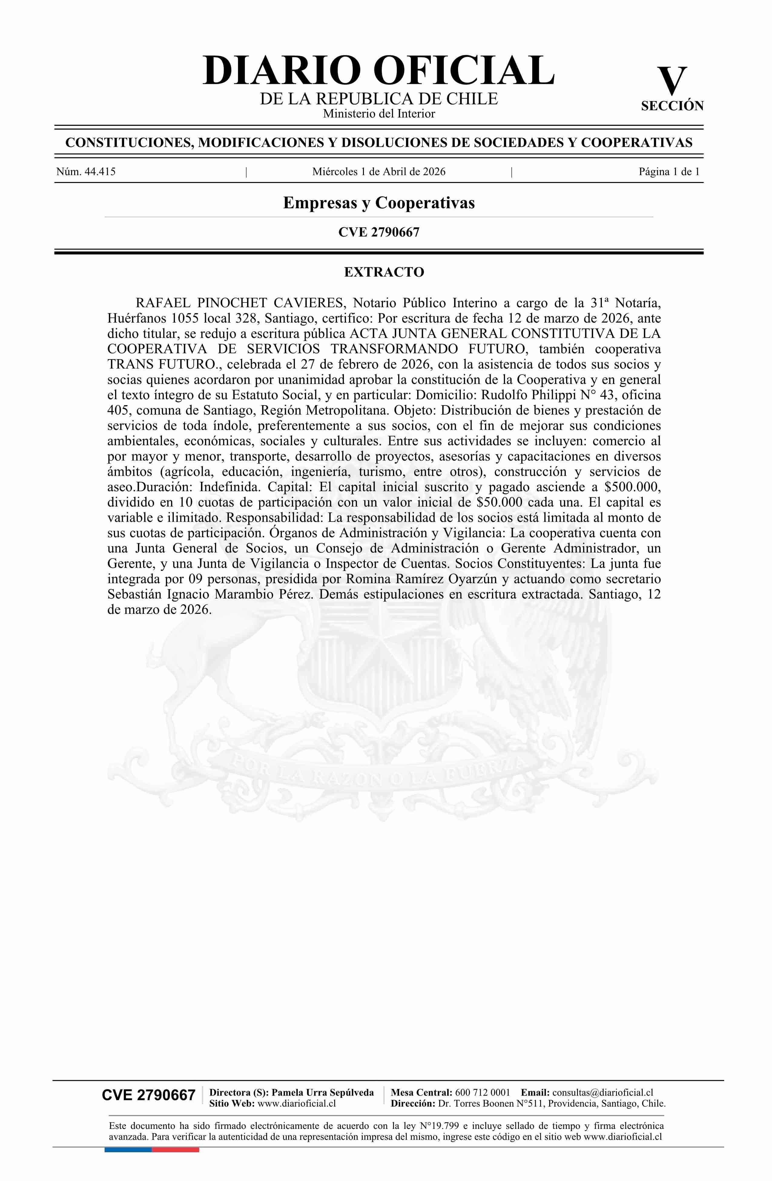 Título: COOPERATIVA DE SERVICIOS TRANSFORMANDO FUTURO