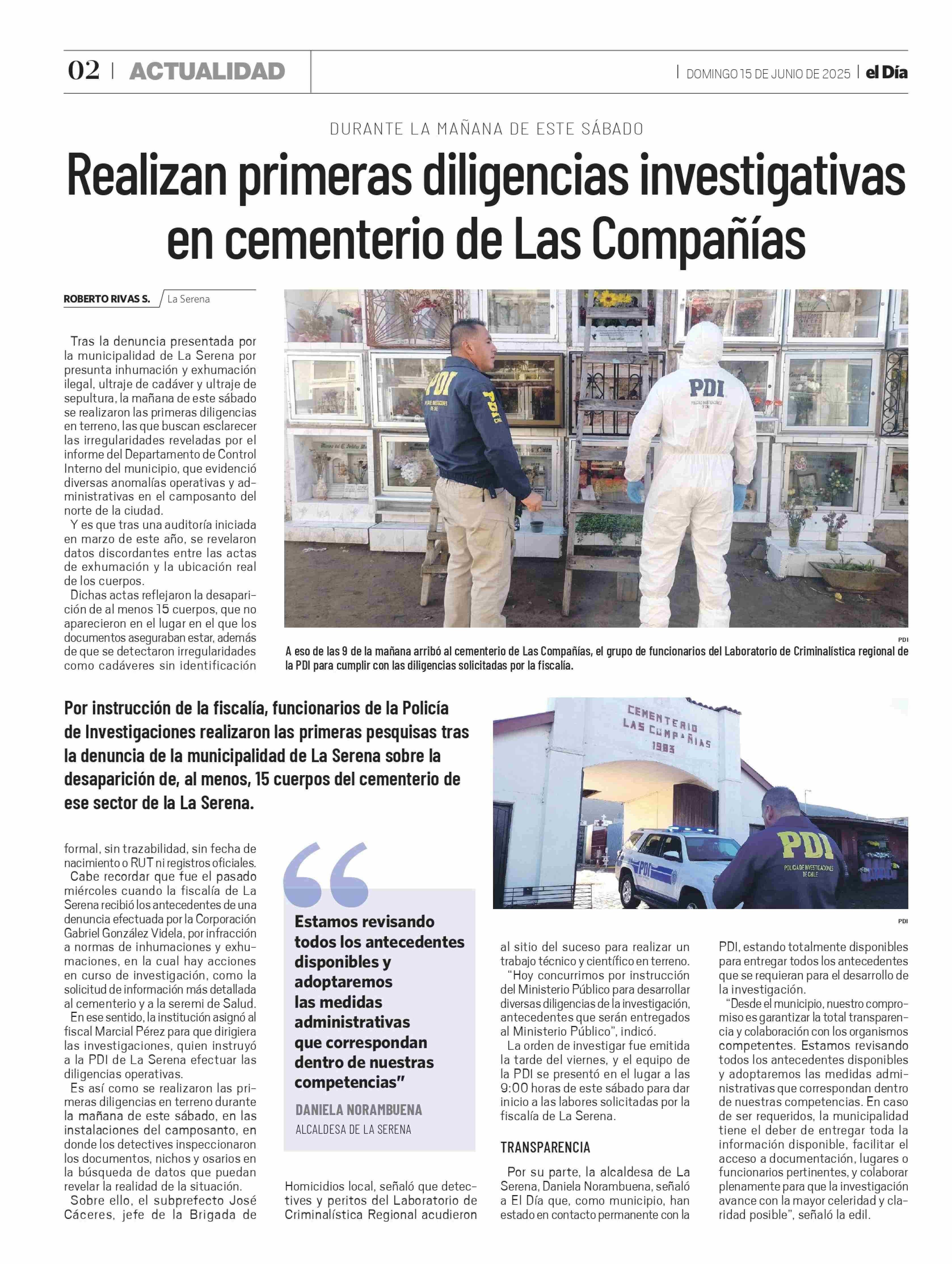 Realizan primeras diligencias investigativas en cementerio de Las Compañías 15-06-2025 El Día |