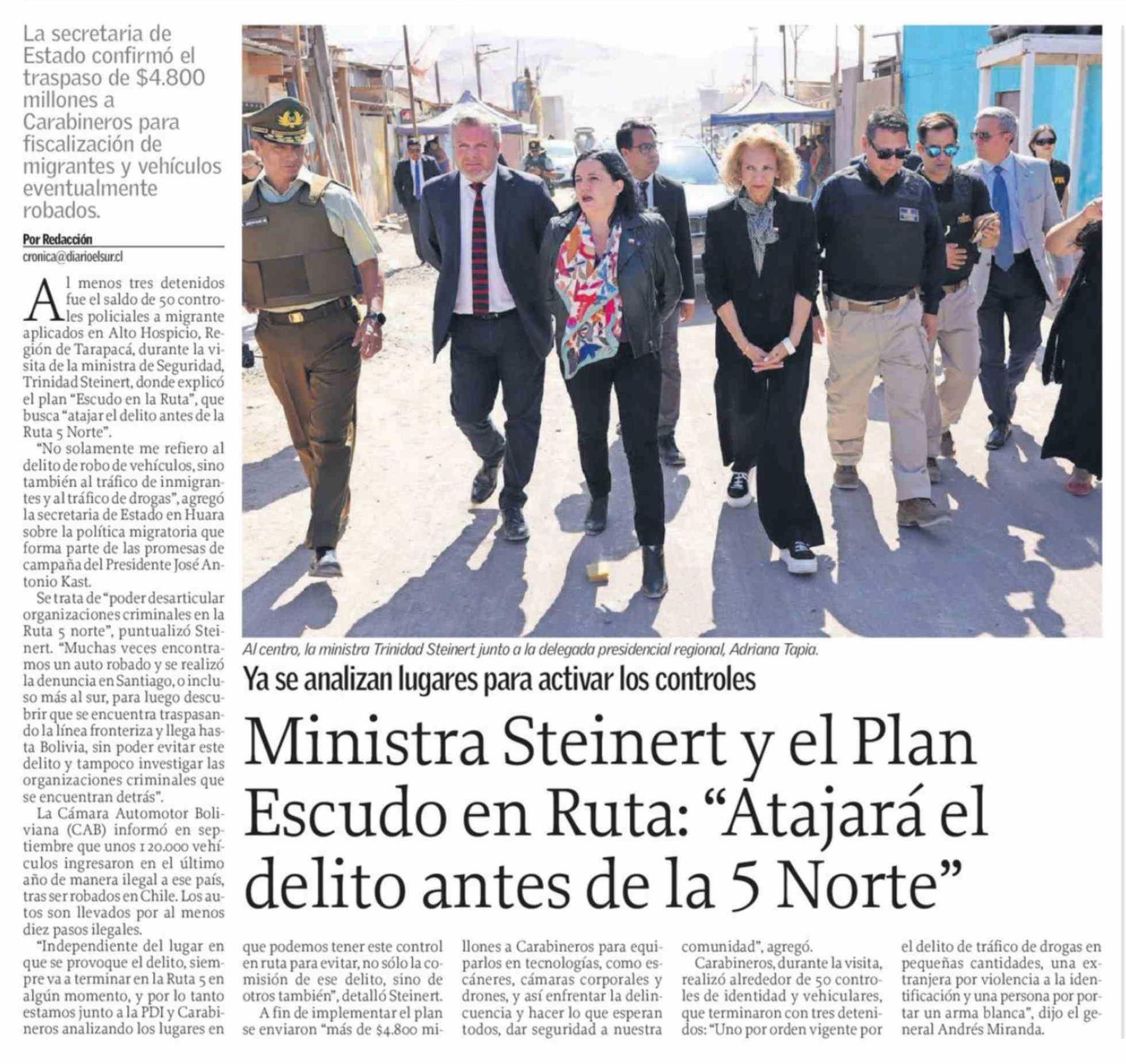 Ministra Steinert y el Plan Escudo en Ruta: "Atajará el delito antes de la 5 Norte" 13-04-2026 El Sur |