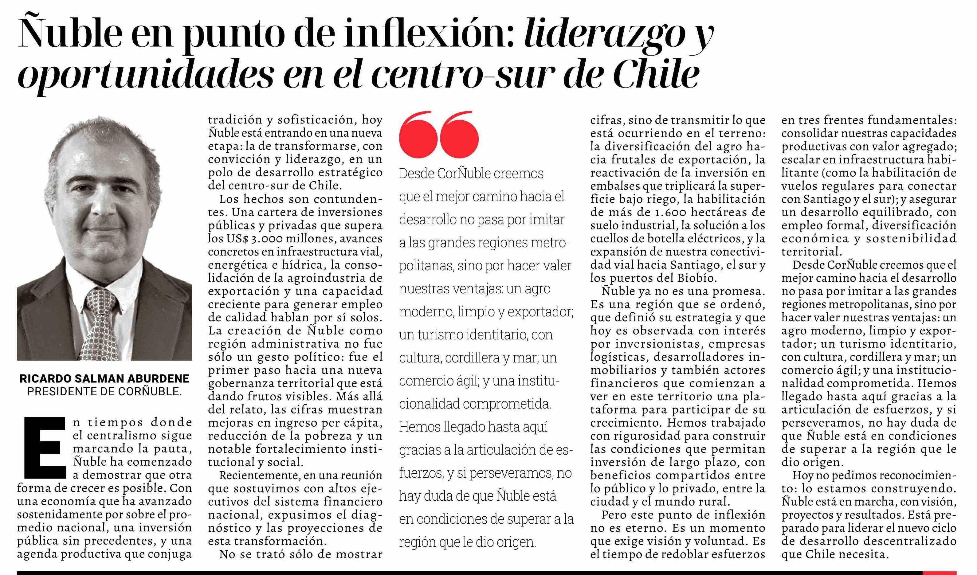 | Título: | Columnas de Opinión: Ñuble en punto de inflexión: liderazgo y oportunidades en el centro-sur de Chile |