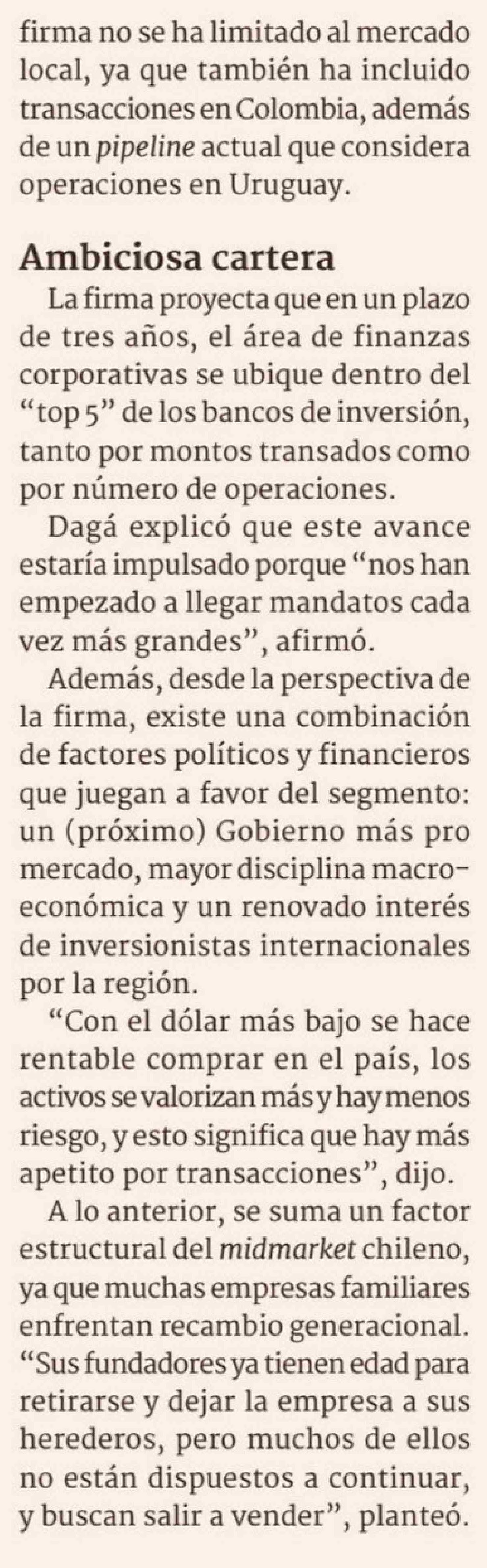 12 Transacciones de hasta US$ 50 millones marcan los dos años del área de finanzas corporativas de Vector Capital 04-02-2026 Diario Financiero |