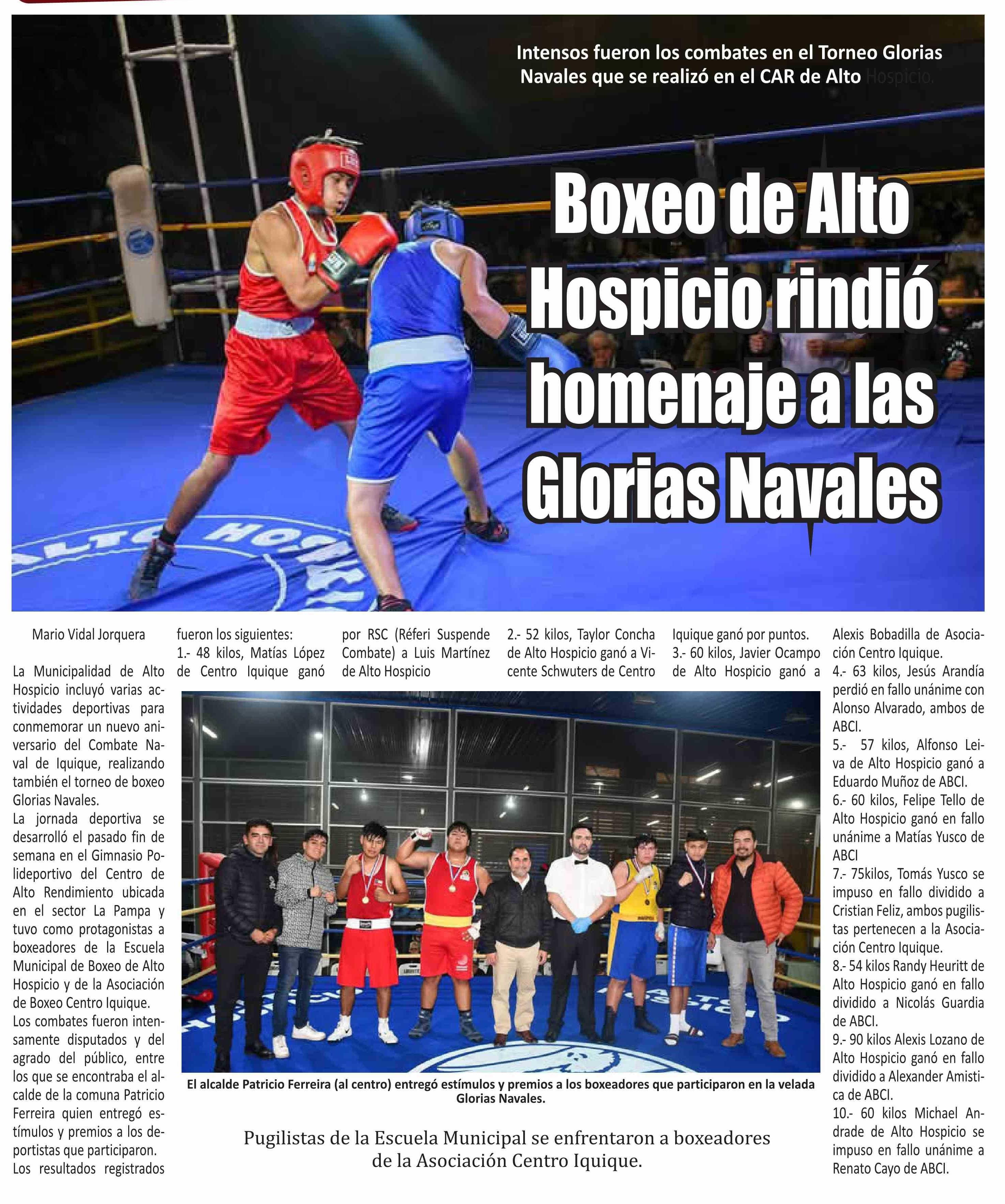 | Título: | Boxeo de Alto Boxeo de Alto Hospicio rindió Hospicio rindió homenaje a las homenaje a las Glorias Navales Glorias Navales |