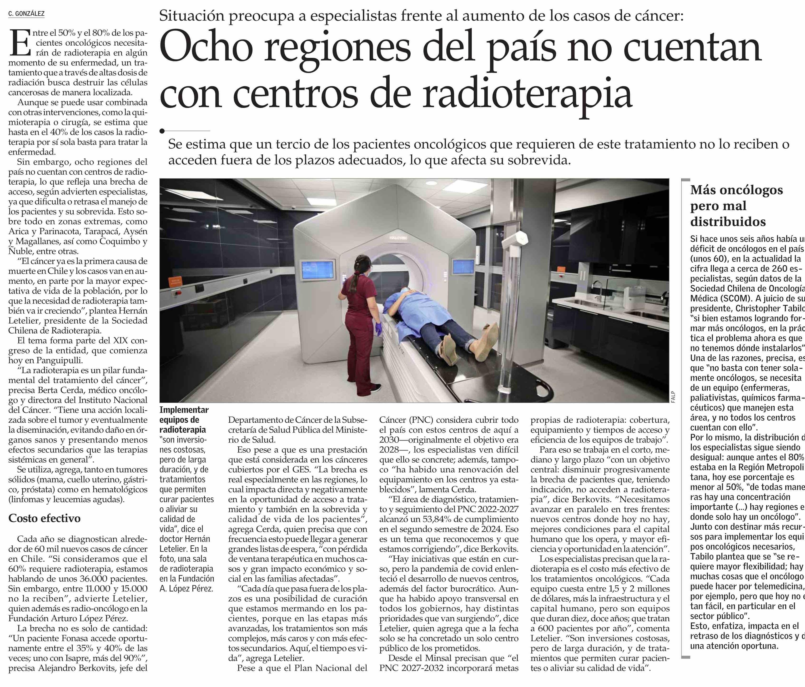 Título: Ocho regiones del país no cuentan con centros de radioterapia