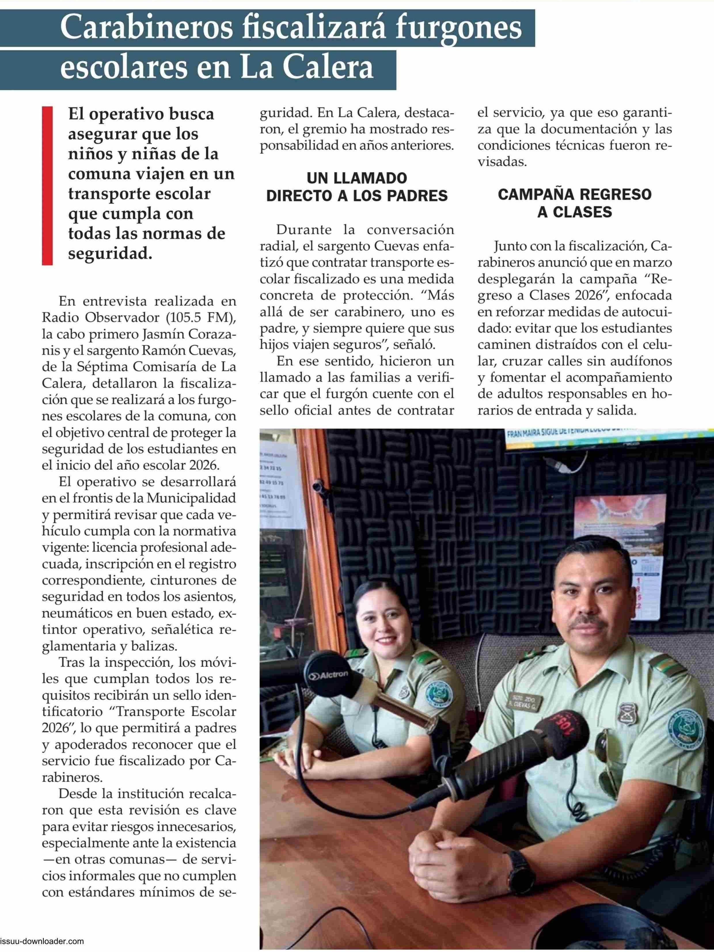 Carabineros fiscalizará furgones escolares en La Calera 25-02-2026 El Observador Vespertino |