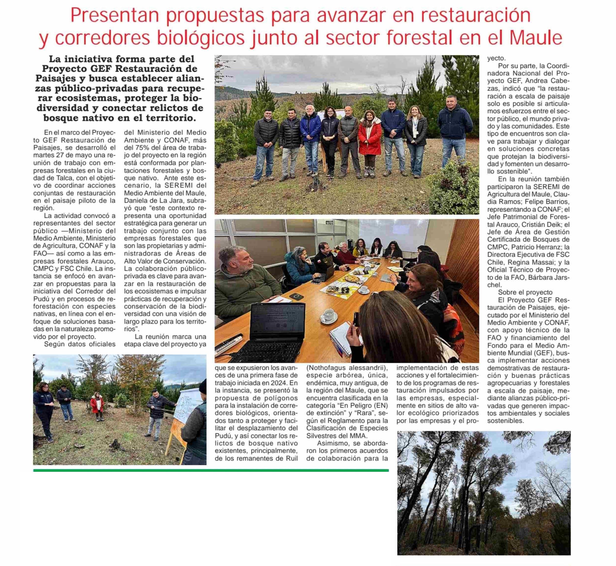 Presentan propuestas para avanzar en restauración y corredores biológicos junto al sector forestal en el Maule 21-06-2025 Maule Hoy |