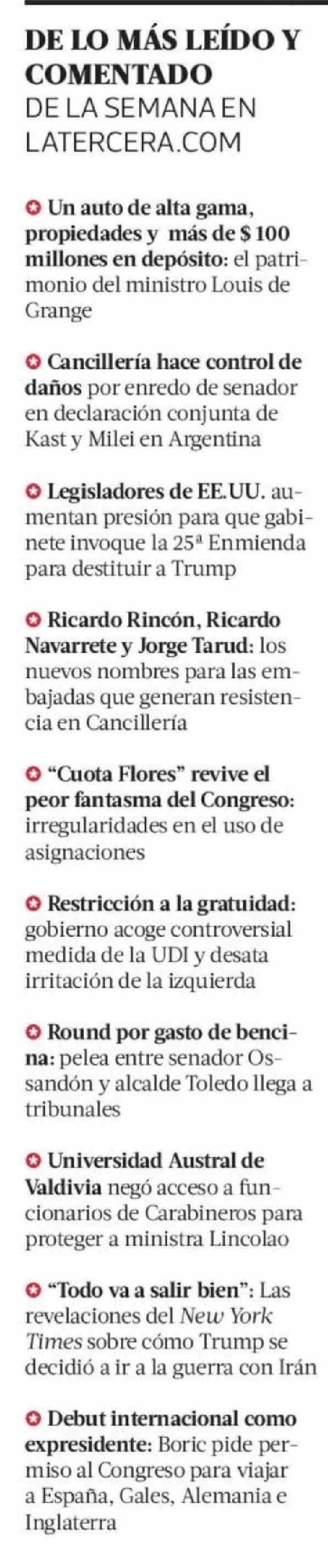 DE LO MÁS LEÍDO Y COMENTADO DE LA SEMANA EN LATERCERA.COM 12-04-2026 La Tercera |