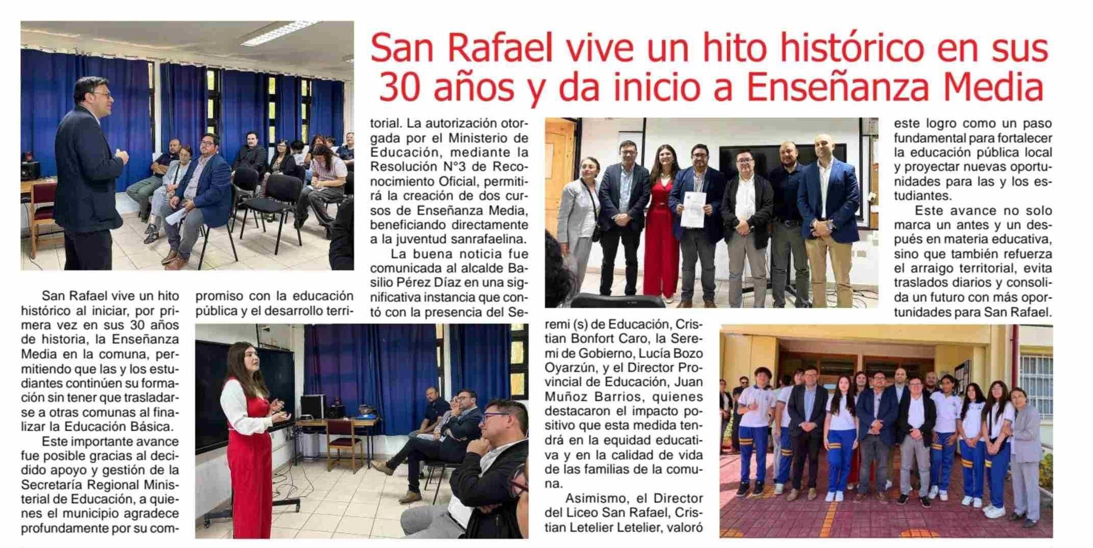 | Título: | San Rafael vive un hito histórico en sus 30 años y da inicio a Enseñanza Media |