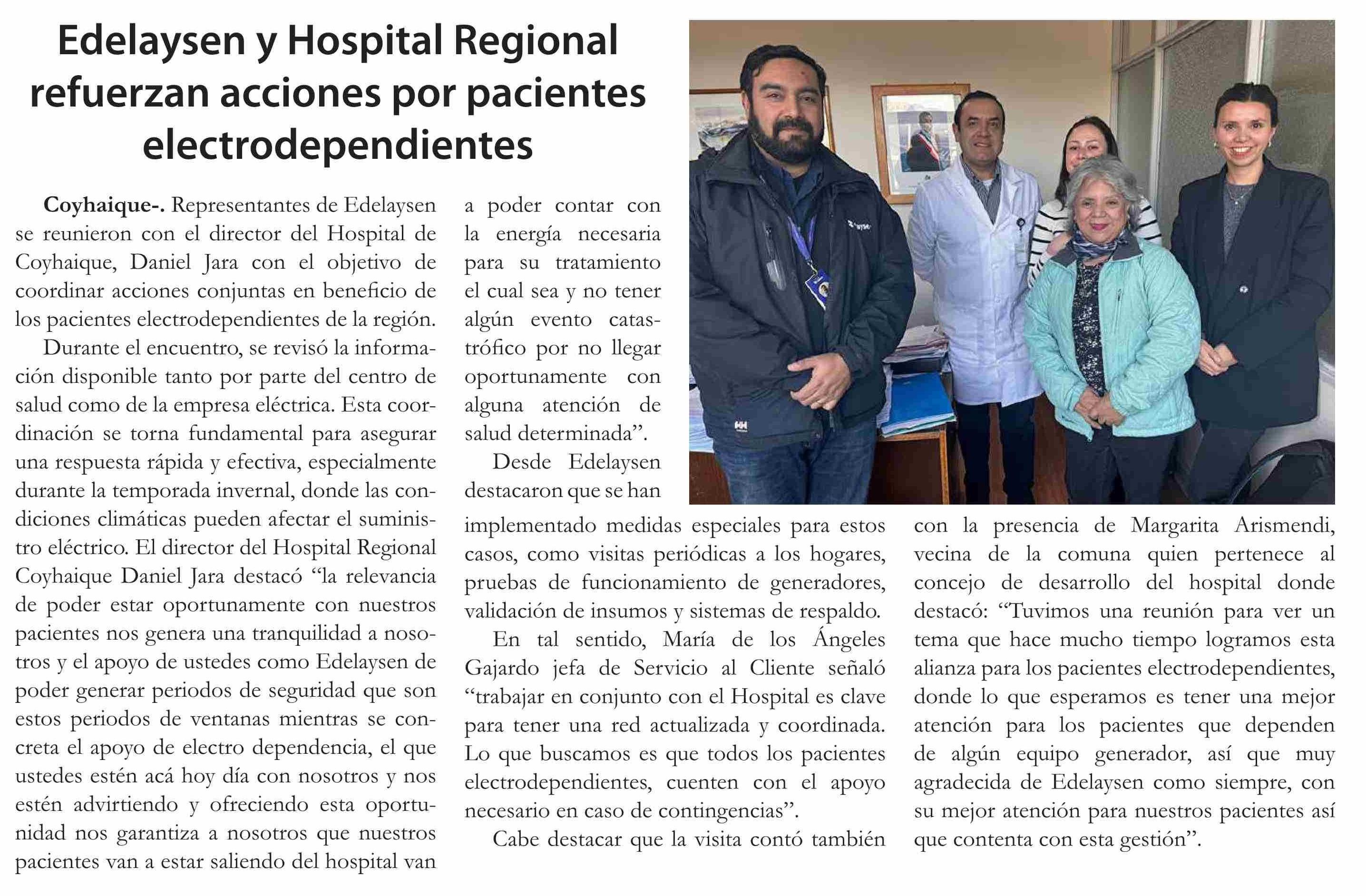 | Título: | Edelaysen y Hospital Regional refuerzan acciones por pacientes electrodependientes |