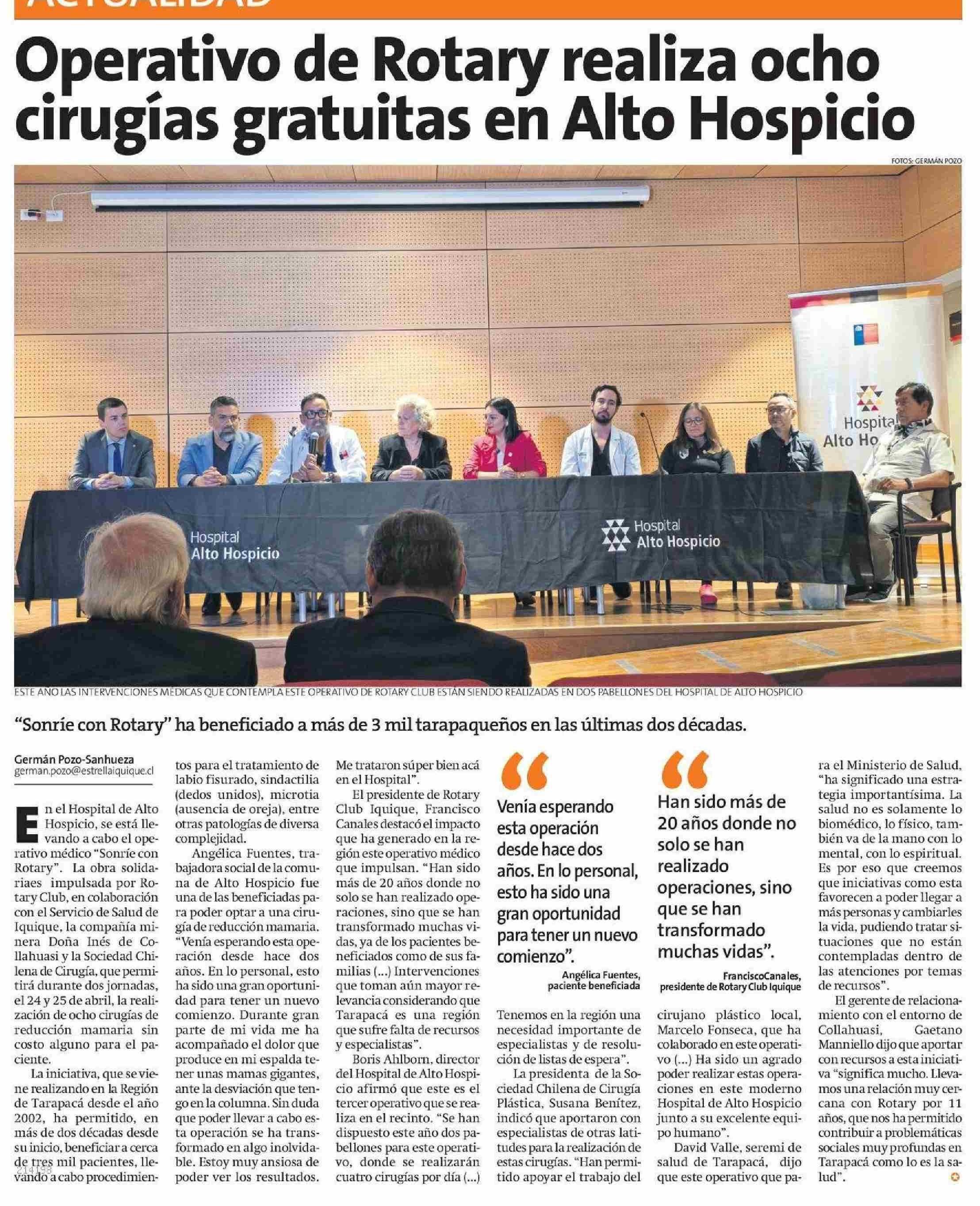 Operativo de Rotary realiza ocho cirugías gratuitas en Alto Hospicio 25-04-2025 La Estrella de Iquique |