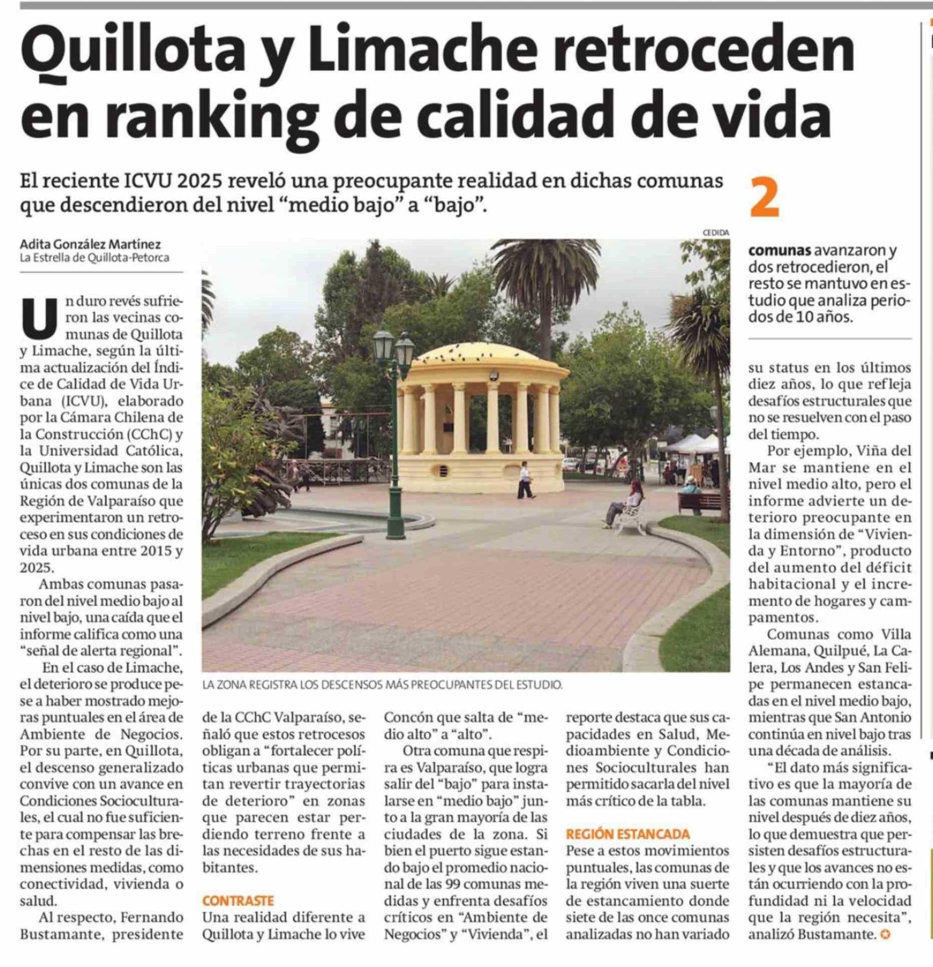 Título: Quillota y Limache retroceden en ranking de calidad de vida