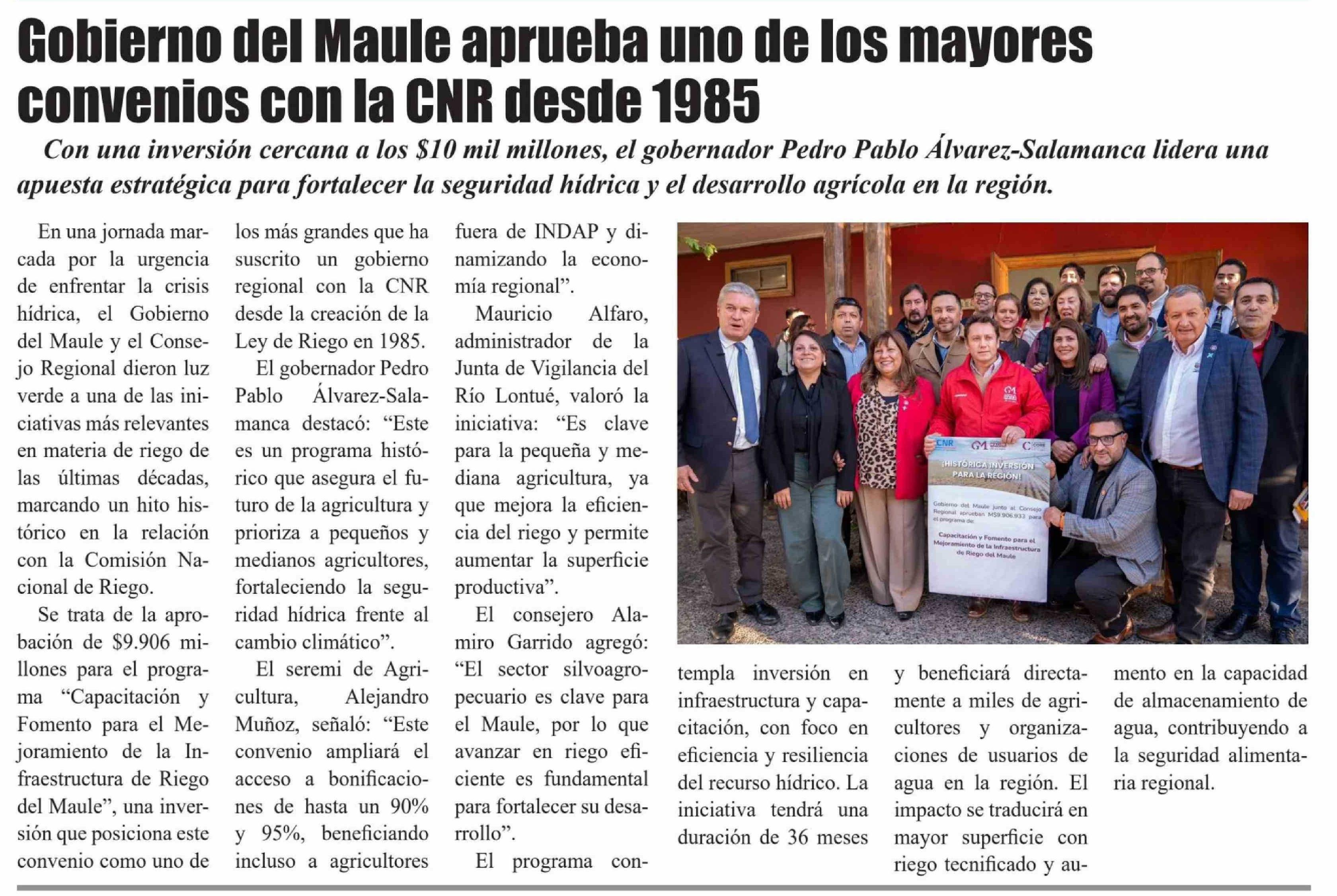 | Título: | Gobierno del Maule aprueba uno de los mayores convenios con la CNR desde 1985 |