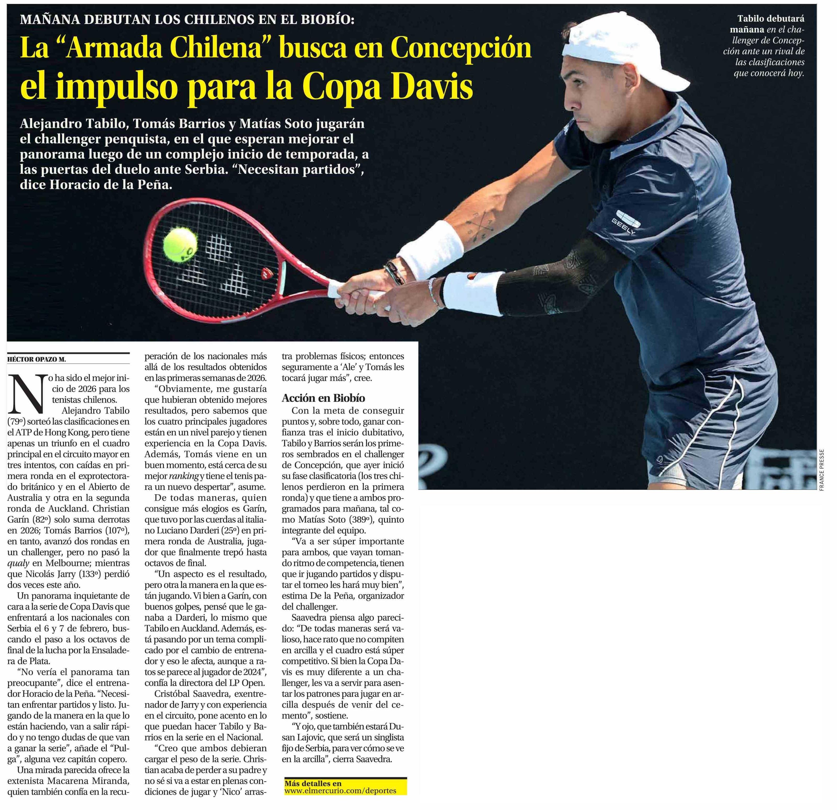 La “Armada Chilena” busca en Concepción el impulso para la Copa Davis 27-01-2026 El Mercurio |