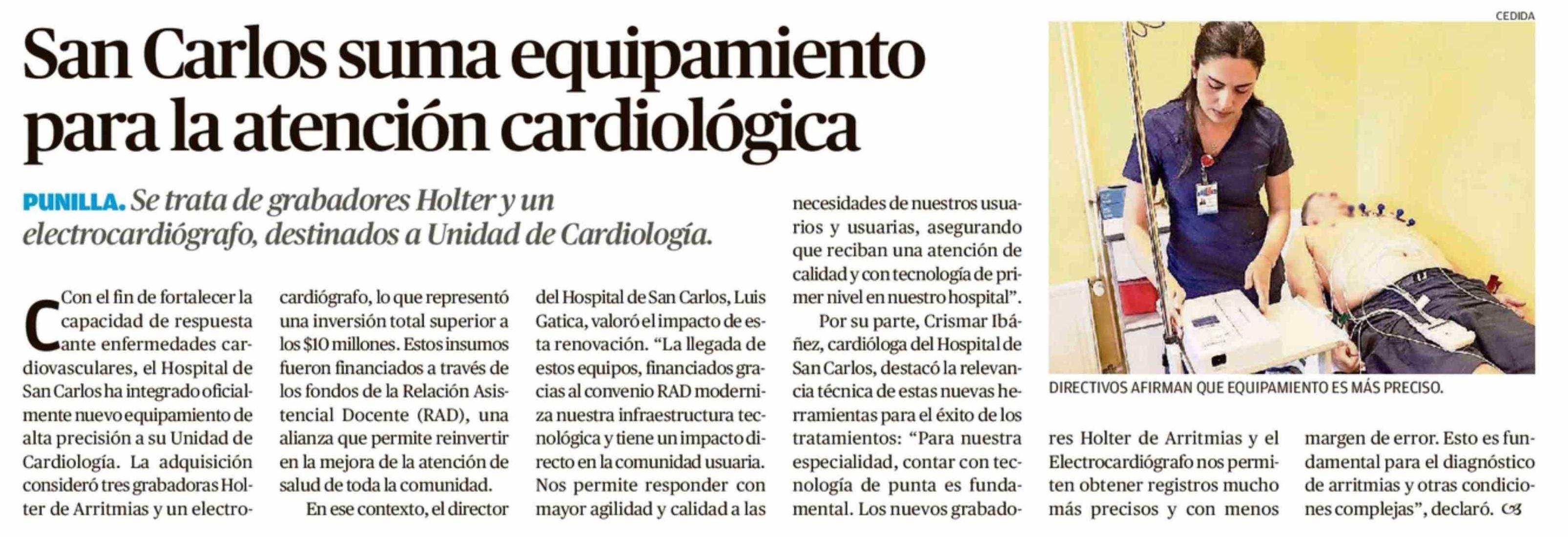 | Título: | San Carlos suma equipamiento para la atención cardiológica |
