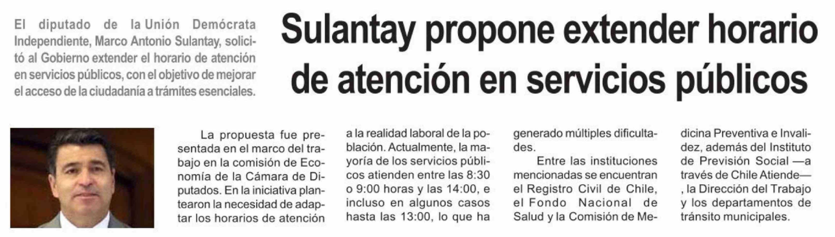 | Título: | Sulantay propone extender horario de atención en servicios públicos |