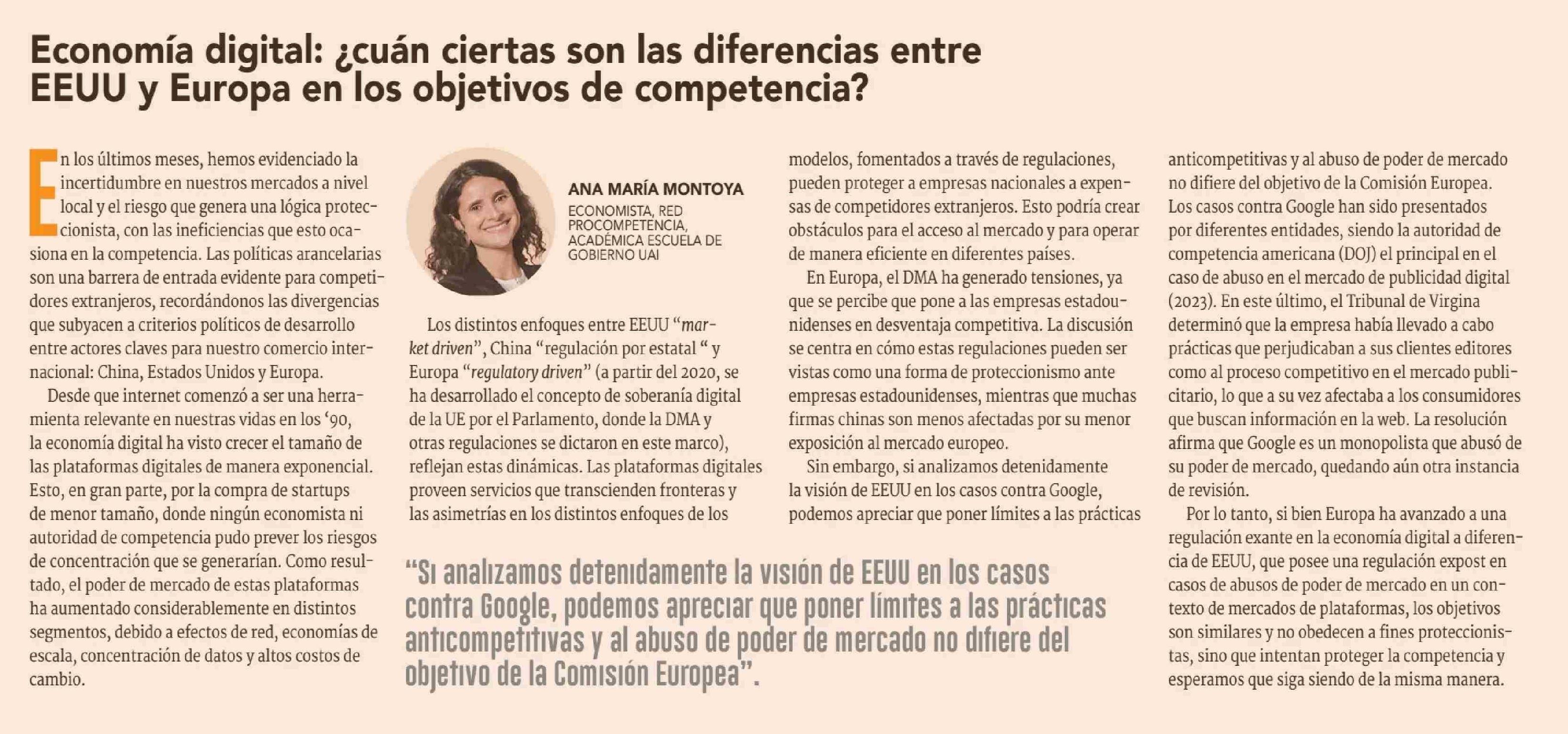 COLUMNAS DE OPINIÓN: Economía digital: ¿cuán ciertas son las diferencias entre EEUU y Europa en los objetivos de competencia? 13-06-2025 Diario Financiero |