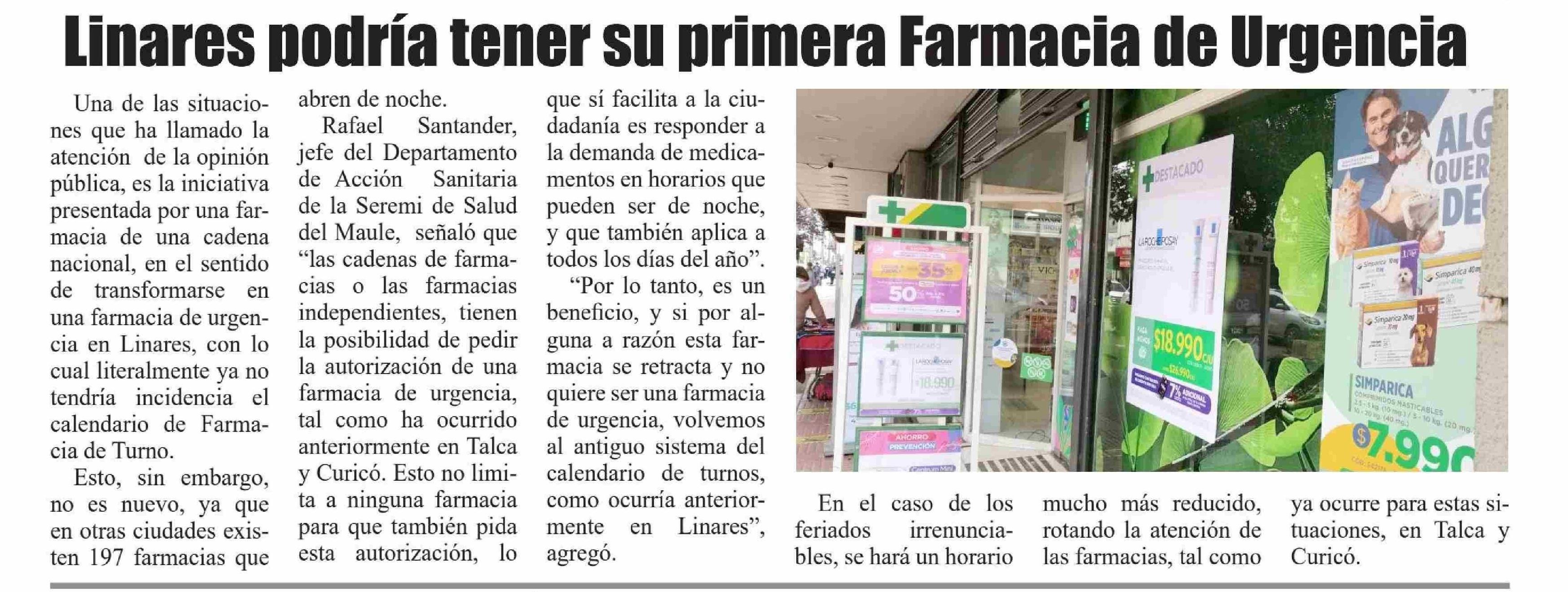 Linares podría tener su primera Farmacia de Urgencia 25-04-2025 El Heraldo |