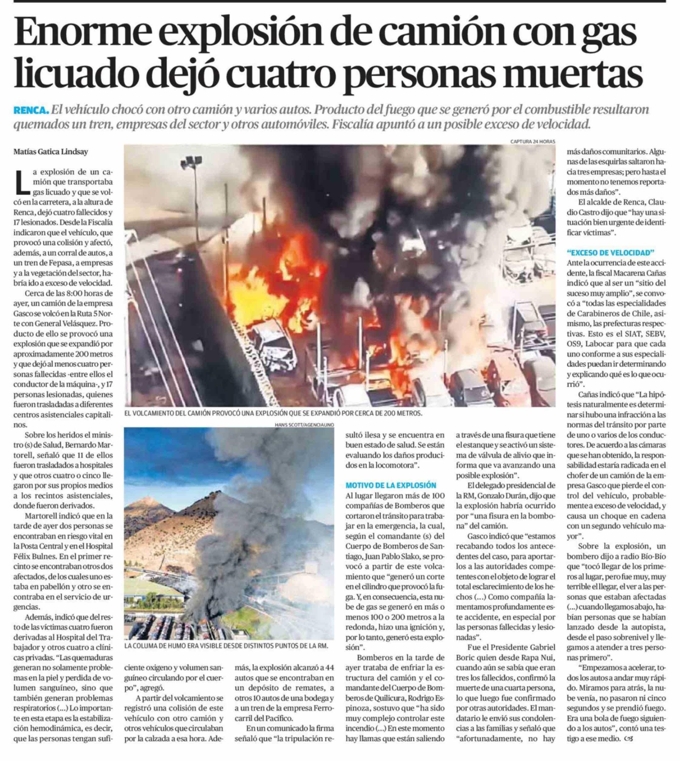 Título: Enorme explosión de camión con gas licuado dejó cuatro personas muertas
