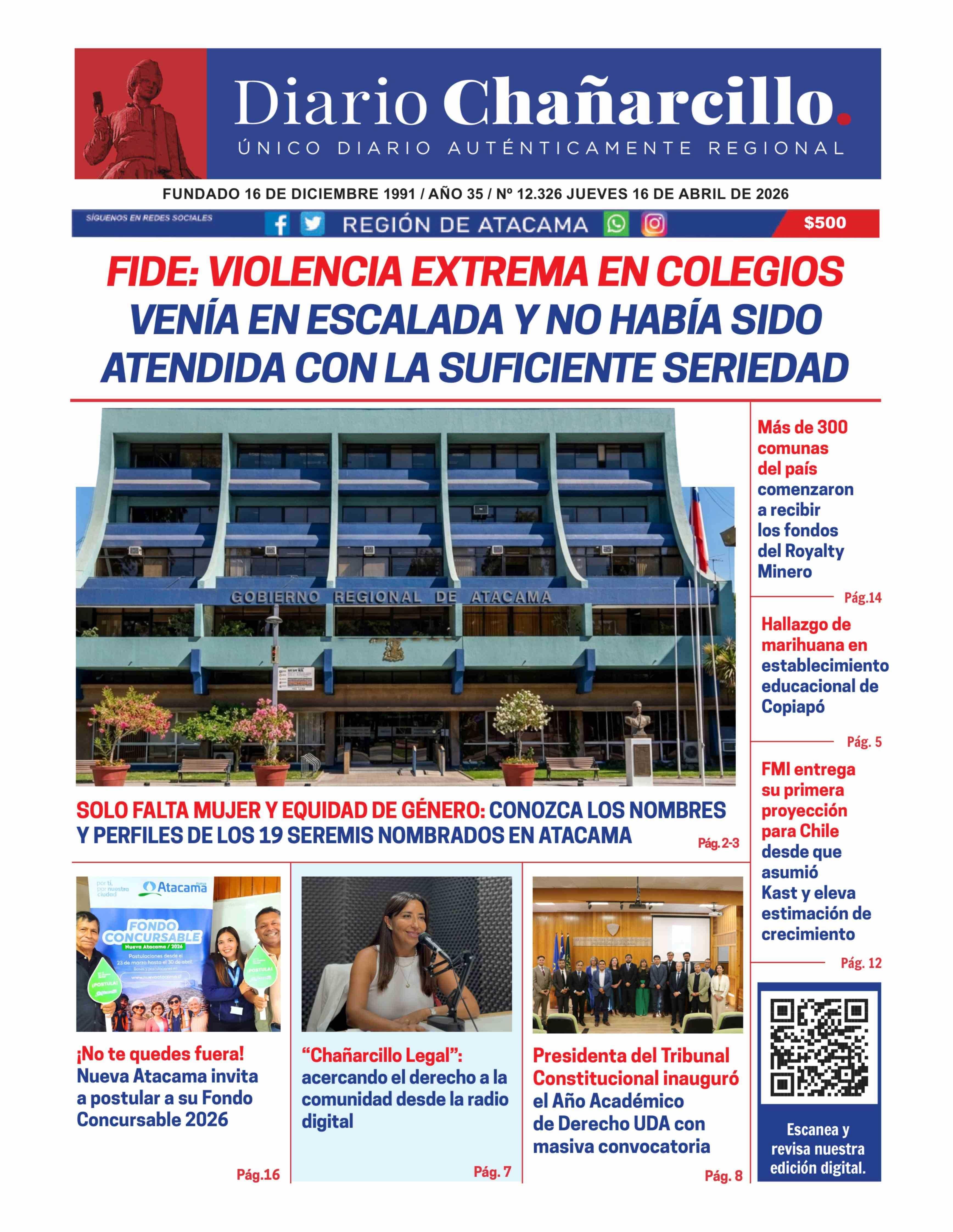 PORTADA DIARIO CHAÑARCILLO CHILE 16-04-2026 Diario Chañarcillo |