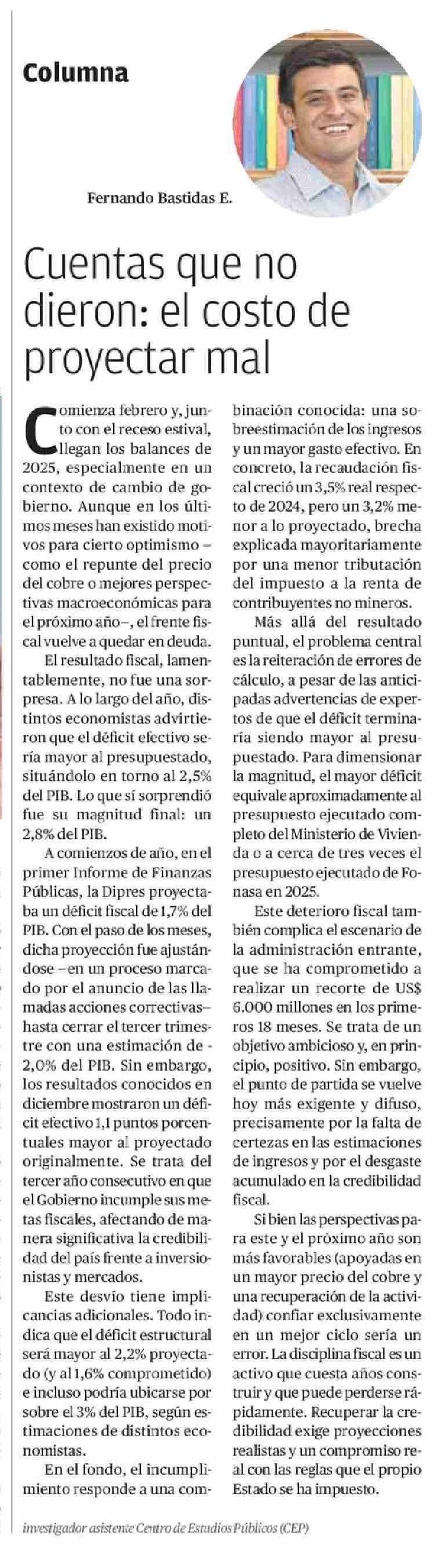 Columnas de Opinión: Cuentas que no dieron: el costo de proyectar mal 08-02-2026 El Diario de Atacama |