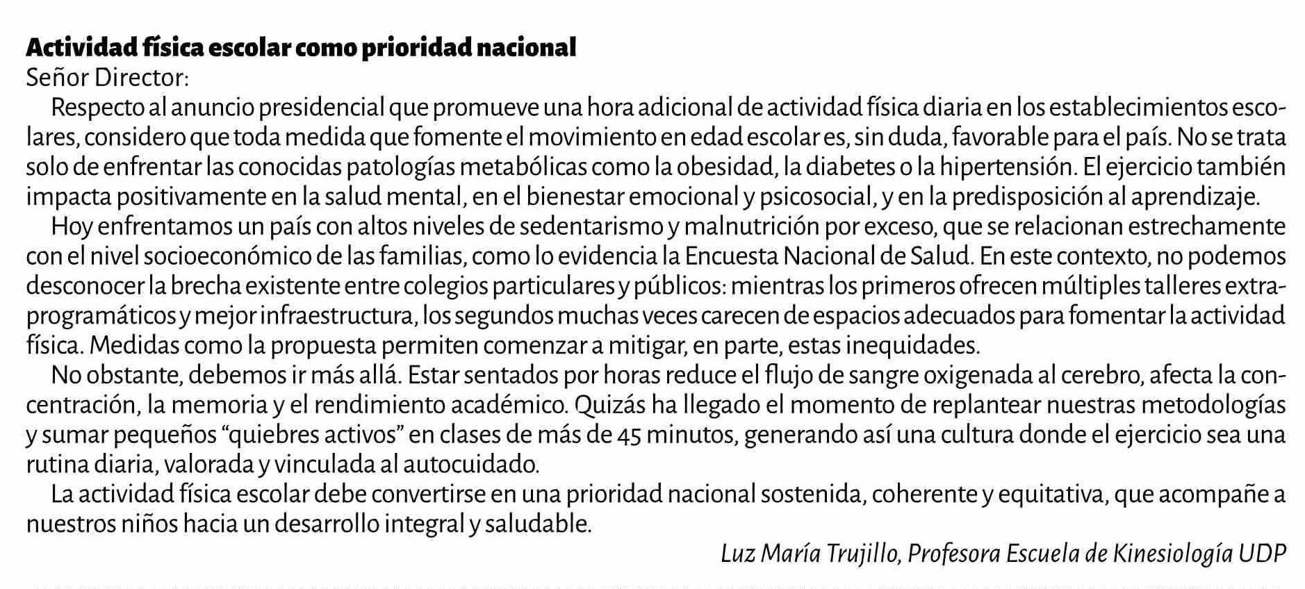 CARTAS: Actividad física escolar como prioridad nacional 16-06-2025 La Discusión |