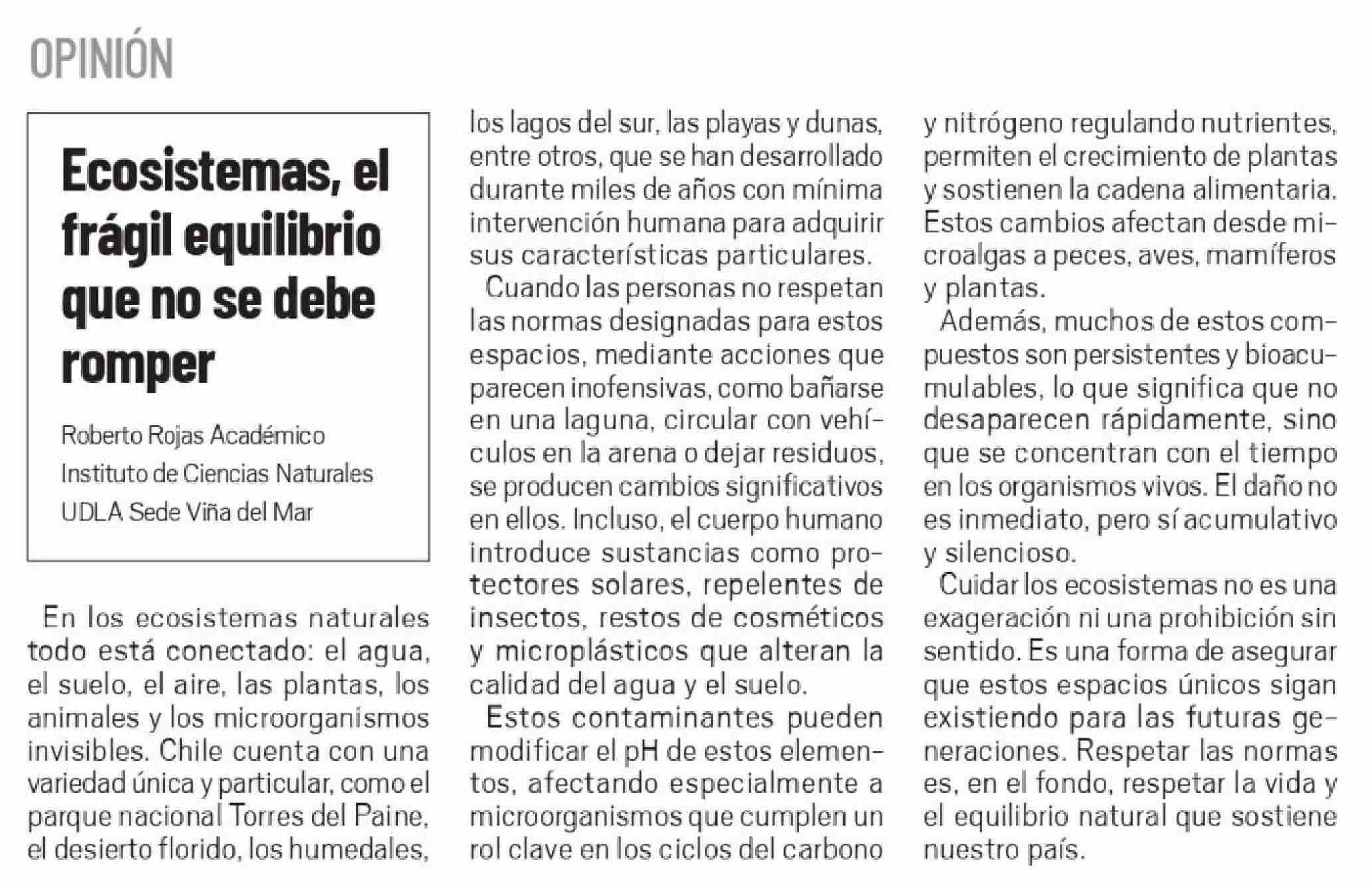 Título: Columnas de Opinión: Ecosistemas, el frágil equilibrio que no se debe romper