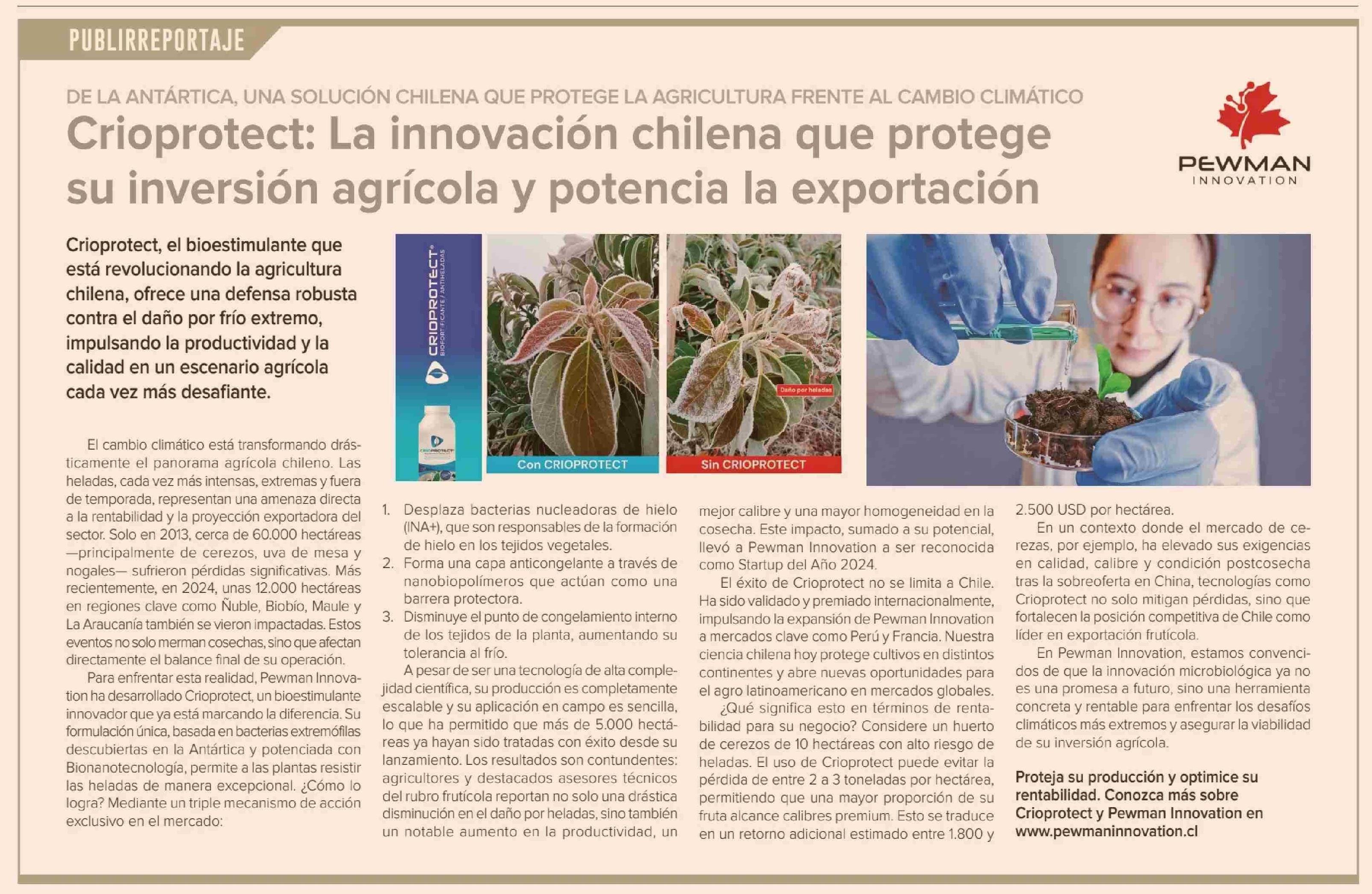 Crioprotect: La innovación chilena que protege su inversión agrícola y potencia la exportación 05-06-2025 Diario Financiero |