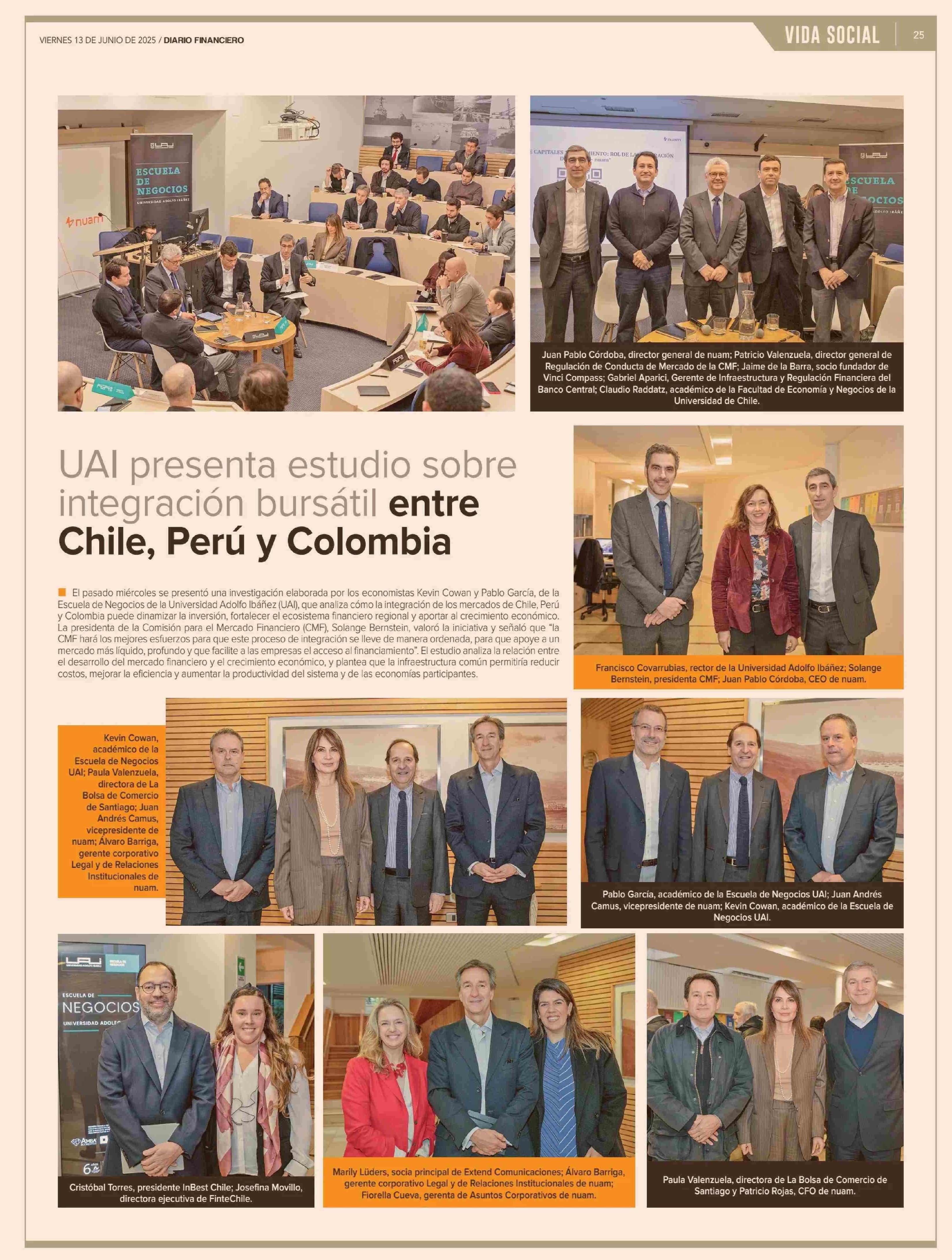 UAI presenta estudio sobre integración bursátil entre Chile, Perú y Colombia 13-06-2025 Diario Financiero |