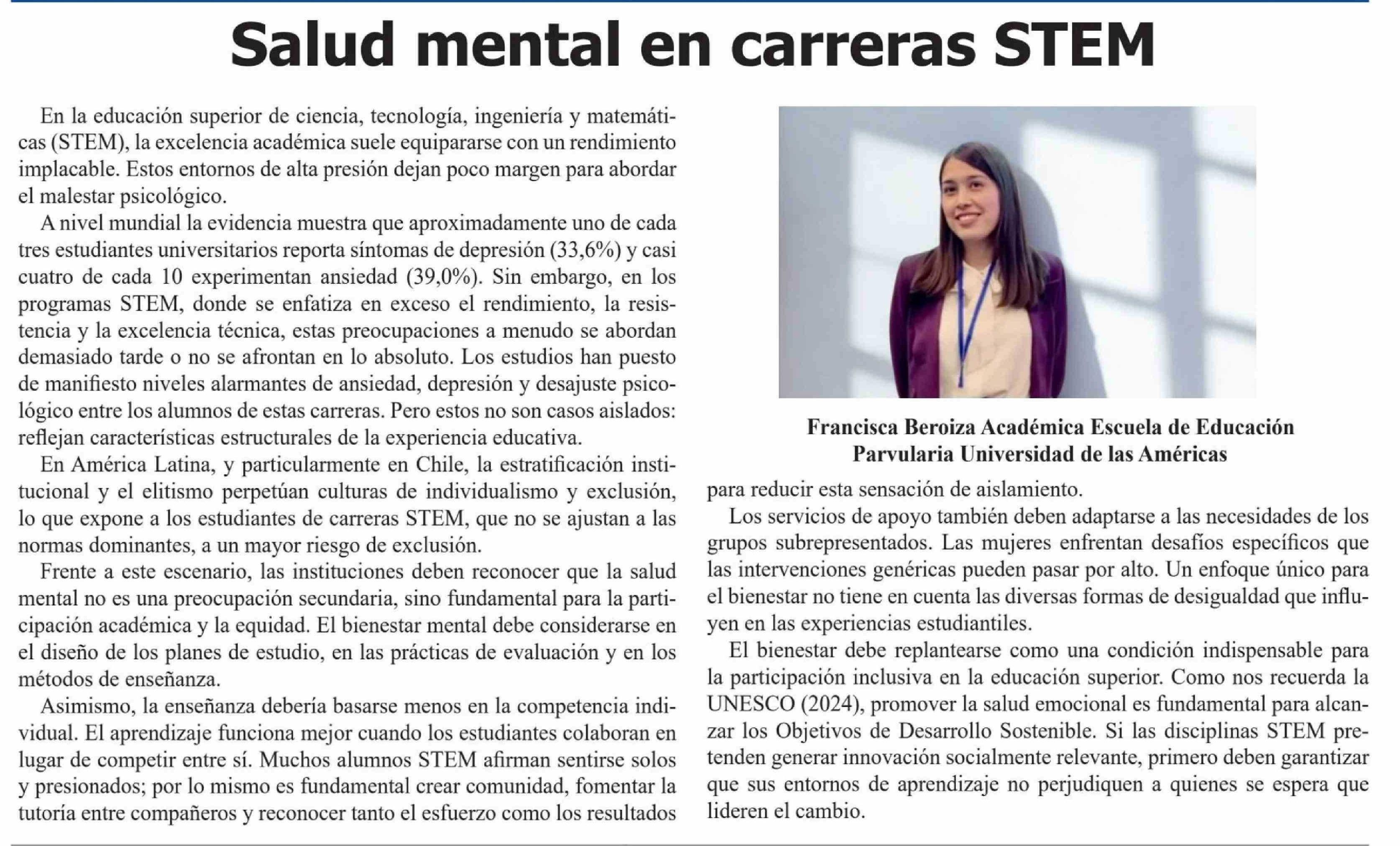 Título: Columnas de Opinión: Salud mental en carreras STEM