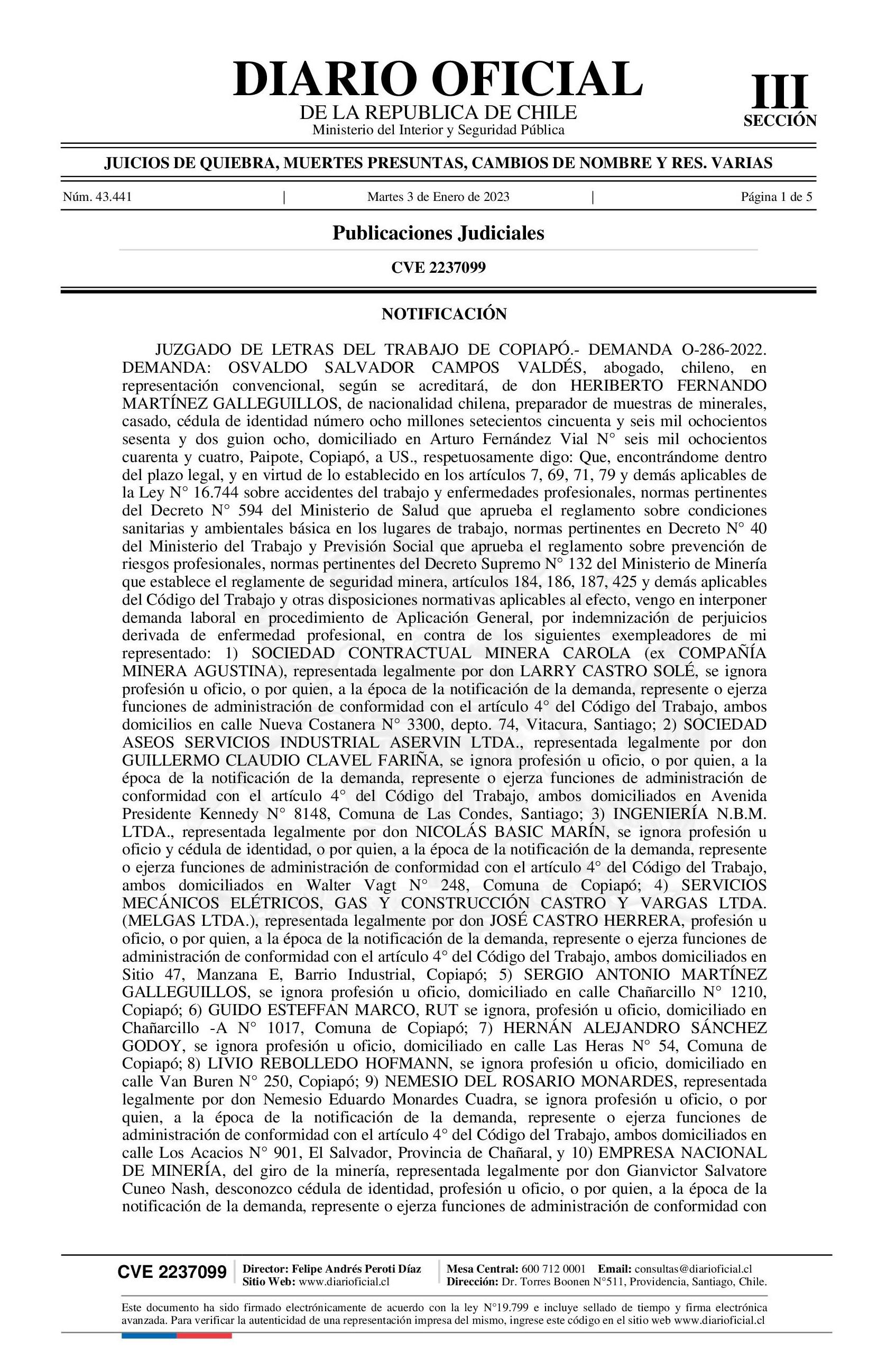 Notificación 03-01-2023 Diario Oficial Edición Electrónica |