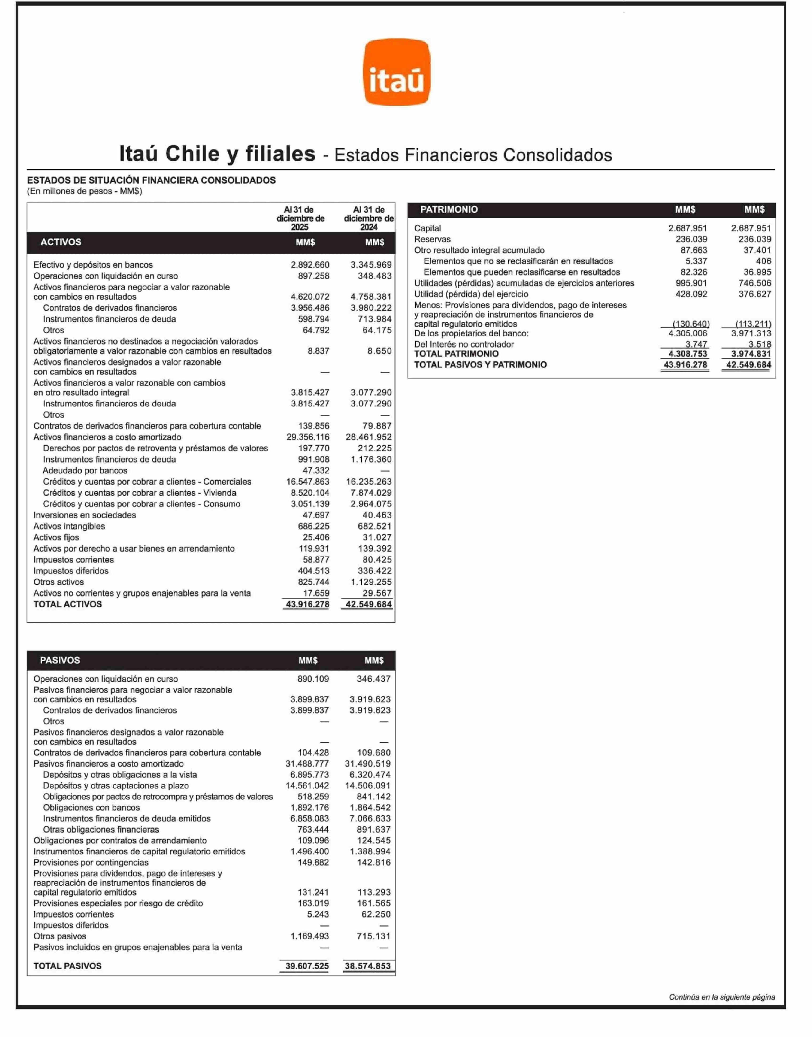 Extractos: Itaú Chile y filiales - Estados Financieros Consolidados 27-02-2026 La Tercera |
