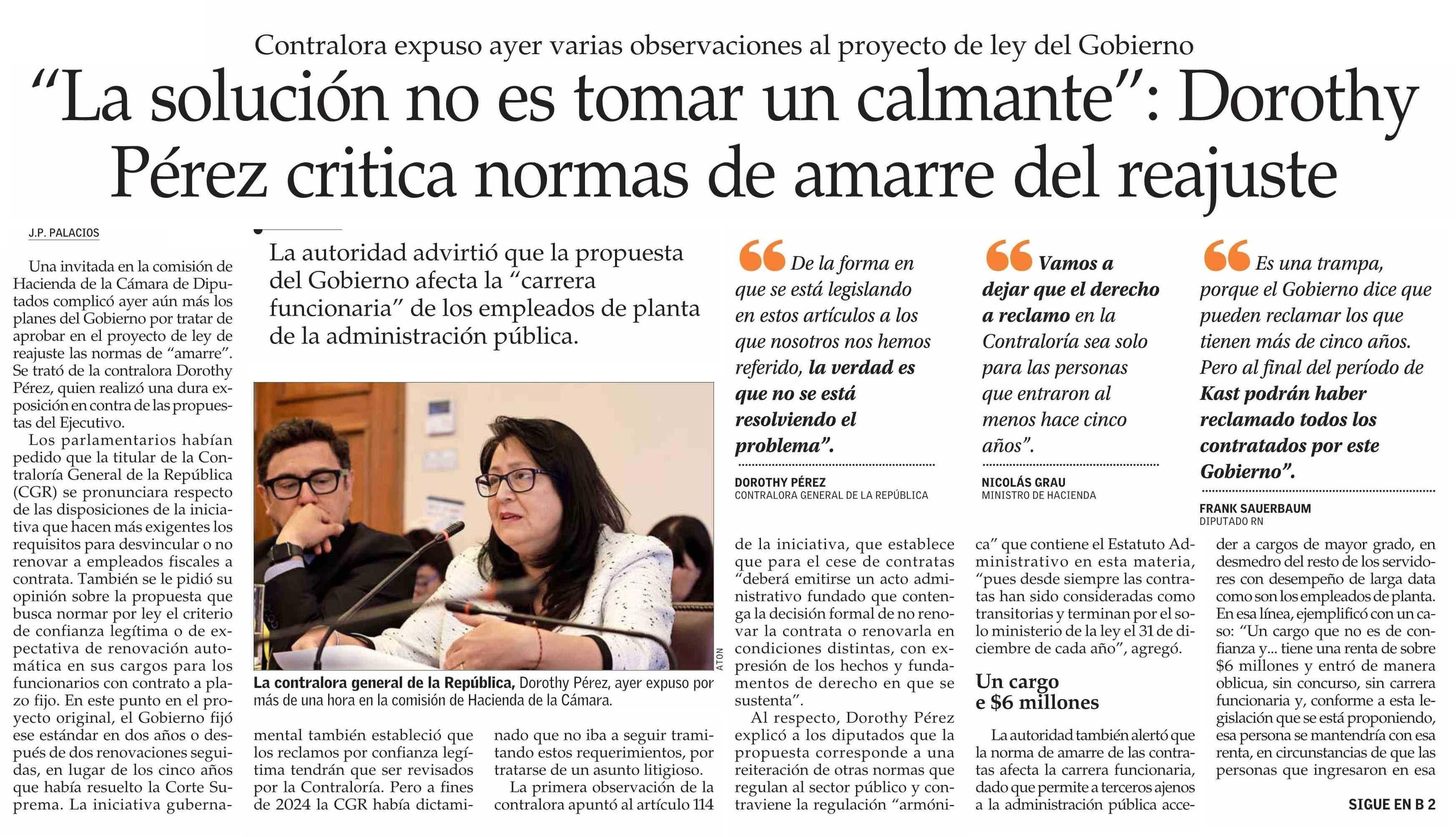 Título: “La solución no es tomar un calmante”: Dorothy Pérez critica normas de amarre del reajuste